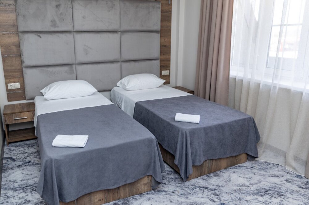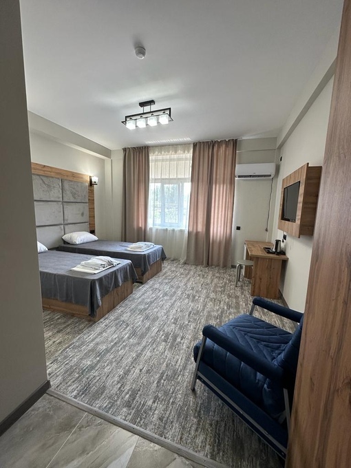 Мы провели отпуск в отеле Ансар в июне 2024 года. Этот отель оказался очень уютным и новым, с идеальной чистотой. Номера просторные и оборудованы телевизором, кондиционером, холодильником, сейфом, чайником и шкафом для одежды и обуви. Кровати оснащены ортопедическими матрасами, а постельное белье белоснежное и меняется дважды в неделю или по запросу. В номере также есть тапочки и халаты. Гостям предоставляют мыло, шампунь, зубную пасту и щетку. Горячая и холодная вода доступны круглосуточно. На этаже есть гладильная доска и утюг, а на лоджии размещена сушилка для белья. Внизу, на первом этаже, расположена столовая, где можно завтракать, обедать и ужинать, а еда готовится очень вкусно. Персонал очень приветливый. Мы отлично провели время и настоятельно рекомендуем этот отель всем нашим знакомым.