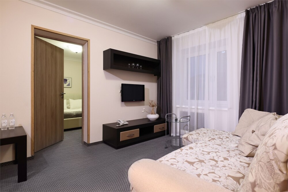 Просторный номер Джуниор сьют - дизайн выполнен в современном стиле, идеально подходит для семейного отдыха с детьми или компании друзей.