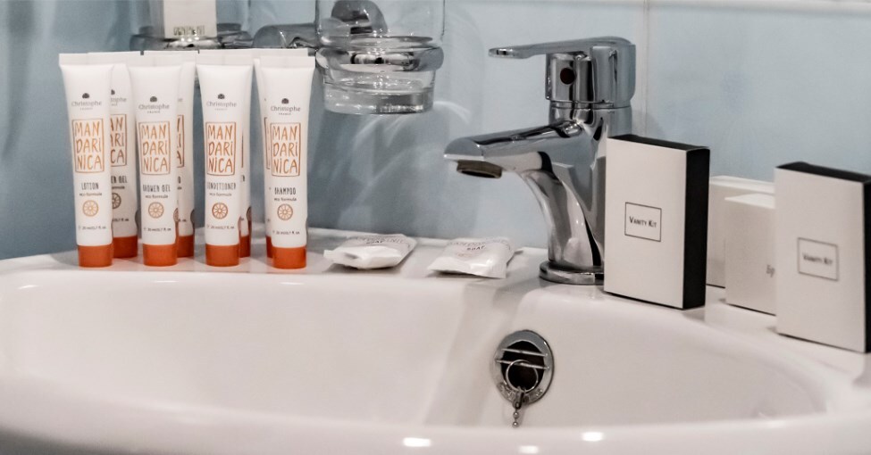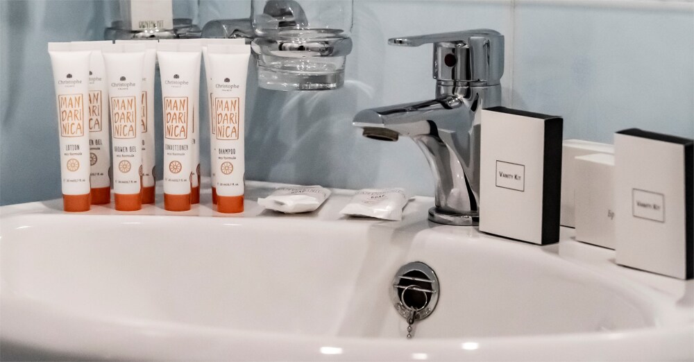 Номера оснащены душевой кабиной, зеркалом с подсветкой, гипоаллергенной французской косметикой Mandarinica.