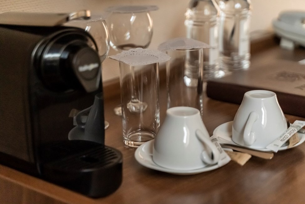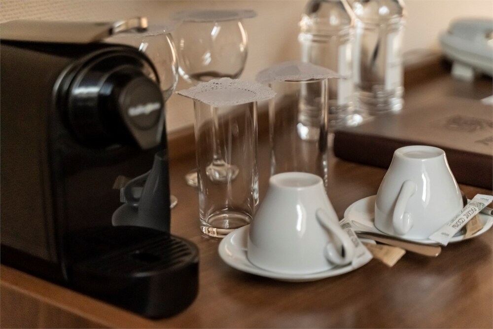 Предусмотрены: Чайная станция и капсульная кофе машина, холодильник, письменный стол и кондиционер.