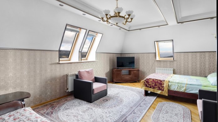 В квартире две двуспальные кровати и раскладной диван в зале. В квартире 2 телевизора в зале и в спальне, стиральная машина, утюг, гладильная доска, фен, микроволновка, большой холодильник, WI FI, вся необходимая посуда. В квартире всего 4 балкона: 2 балкона в зале и 2 балкона в спальнях. Красивый вид на Кисловодск. Цена включает проживание 4 взрослых и 2 детей. Для детей есть раскладной диван.