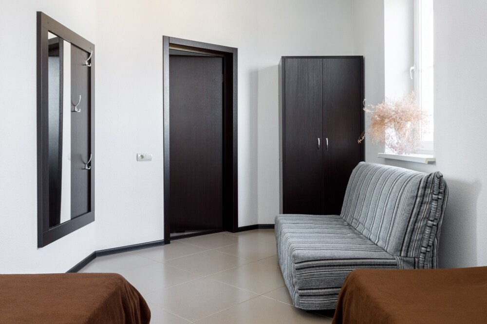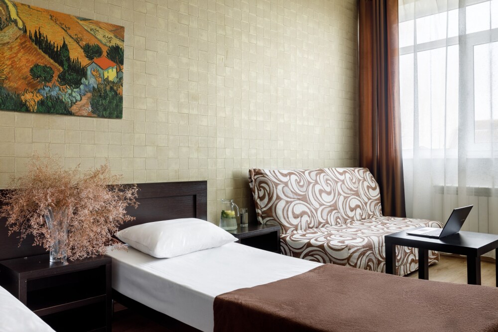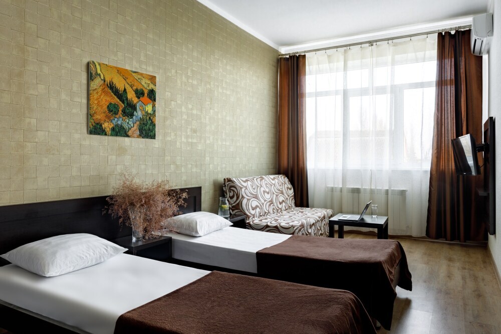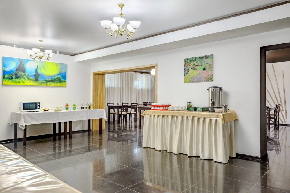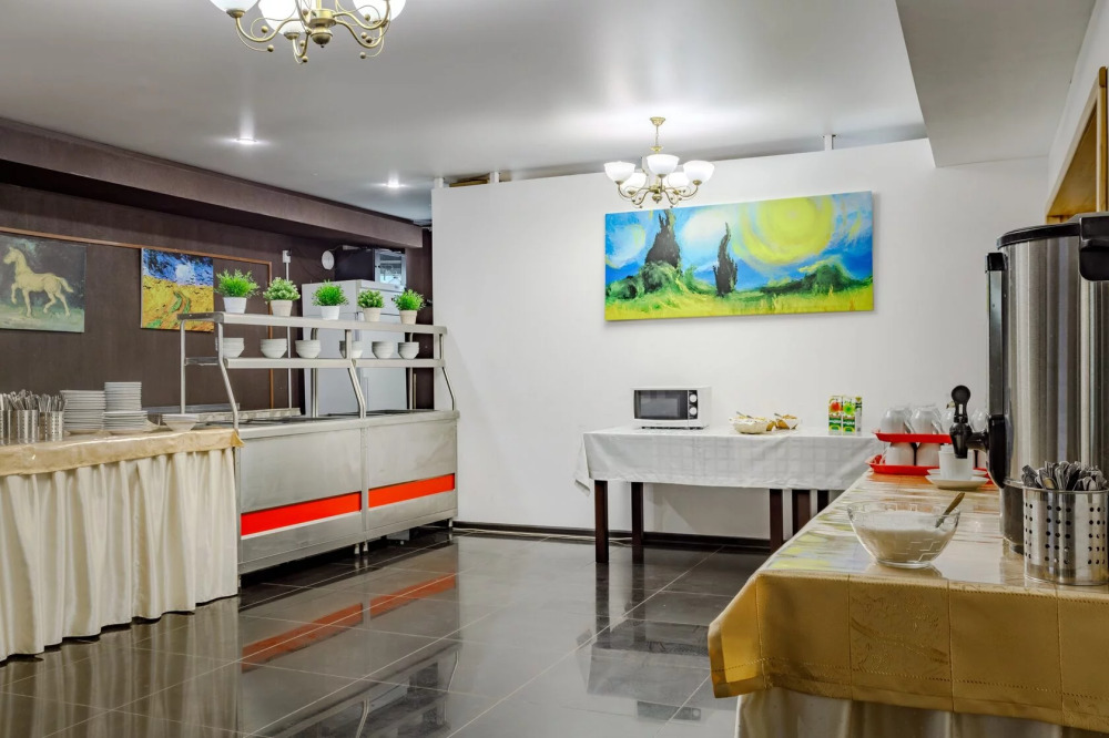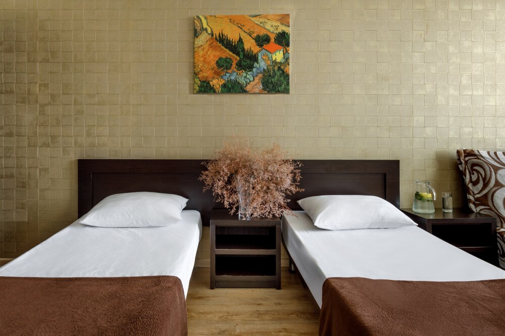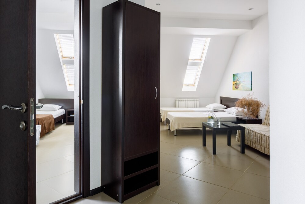 Для гостей благоустроенная и закрытая территория, где расположен 4-х этажный корпус. Все номера с удобствами и ремонтом с 1 по 3 этажи. В отеле три категории номеров: Стандарт, Комфорт и Семейный 2-комнатный. Питьевая вода в кулере на каждом этаже. Гладильная доска и утюг расположены на 1 и 3 этажах. Прокат для детей (бесплатно): детская кроватка, ванночка, горшки и стульчики для кормления.