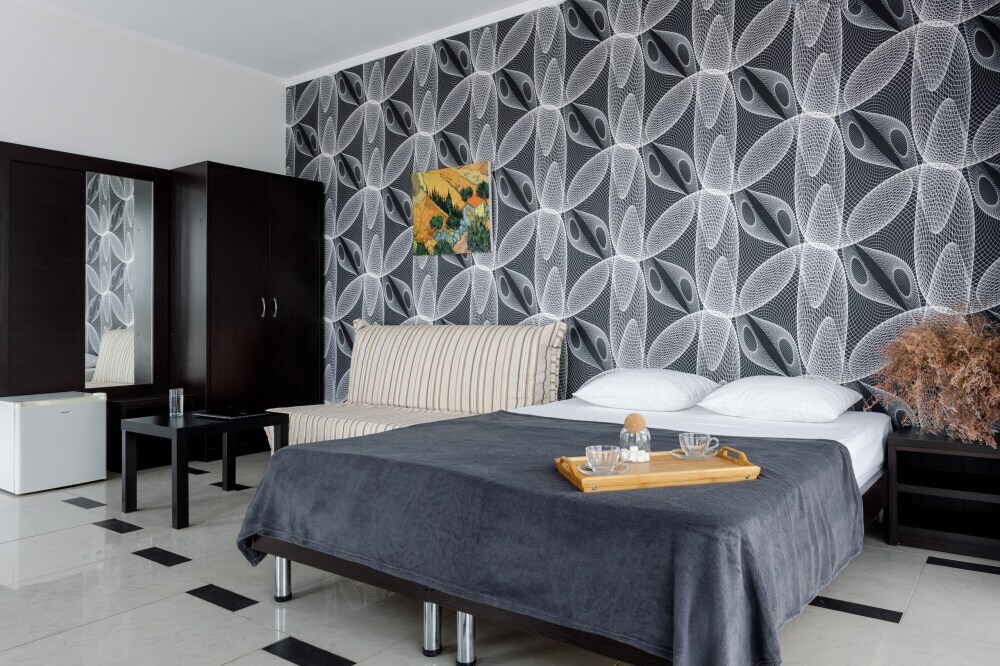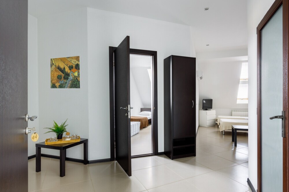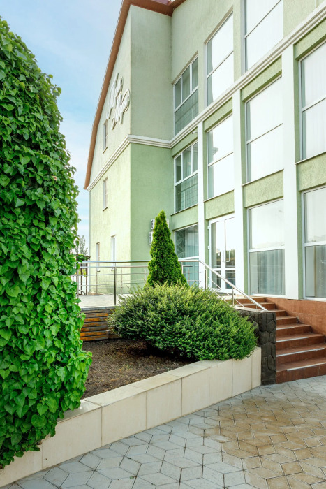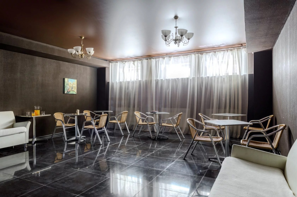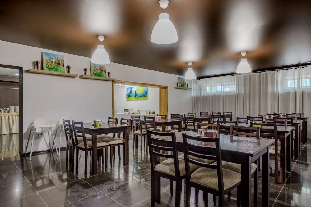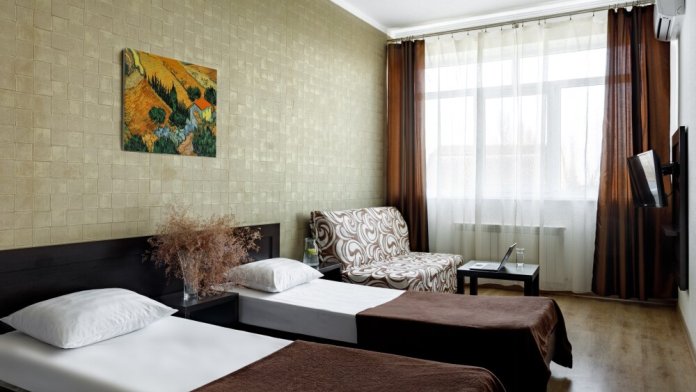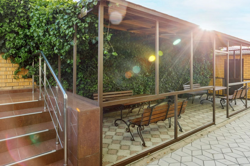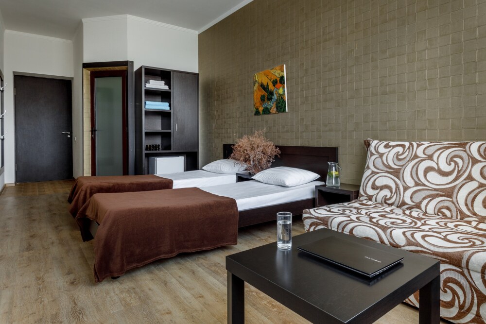 Для гостей благоустроенная и закрытая территория, где расположен 4-х этажный корпус. Все номера с удобствами и ремонтом с 1 по 3 этажи. В отеле три категории номеров: Стандарт, Комфорт и Семейный 2-комнатный. Питьевая вода в кулере на каждом этаже. Гладильная доска и утюг расположены на 1 и 3 этажах. Прокат для детей (бесплатно): детская кроватка, ванночка, горшки и стульчики для кормления.