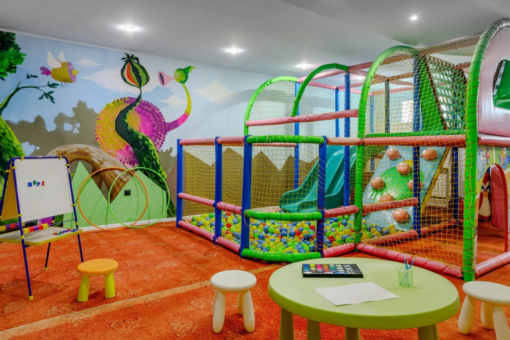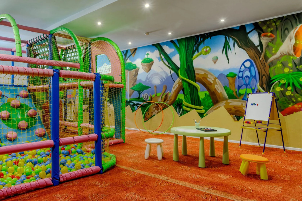 Пока дети заняты своими делами под чутким руководством профессиональных аниматоров, родители смогут посвятить время себе. Программы для всех возрастов распределили по локациям, чтобы гостям отеля было удобно и интересно. Детский клуб «More kids» - создан для комфортного проведения досуга детей до 6 лет. Лабиринт с горками и сухим бассейном порадует даже самых маленьких гостей. Игровой холл для самых активных гостей каждый день и каждый час с самого утра и до позднего вечера аниматоры развлекают гостей отеля, чтобы превратить каждый день в яркий праздник. В программе: настольные игры, квесты, спортивные игры, состязания и активы на свежем воздухе. Время работы игровых комнат с 08:00 до 22:00.