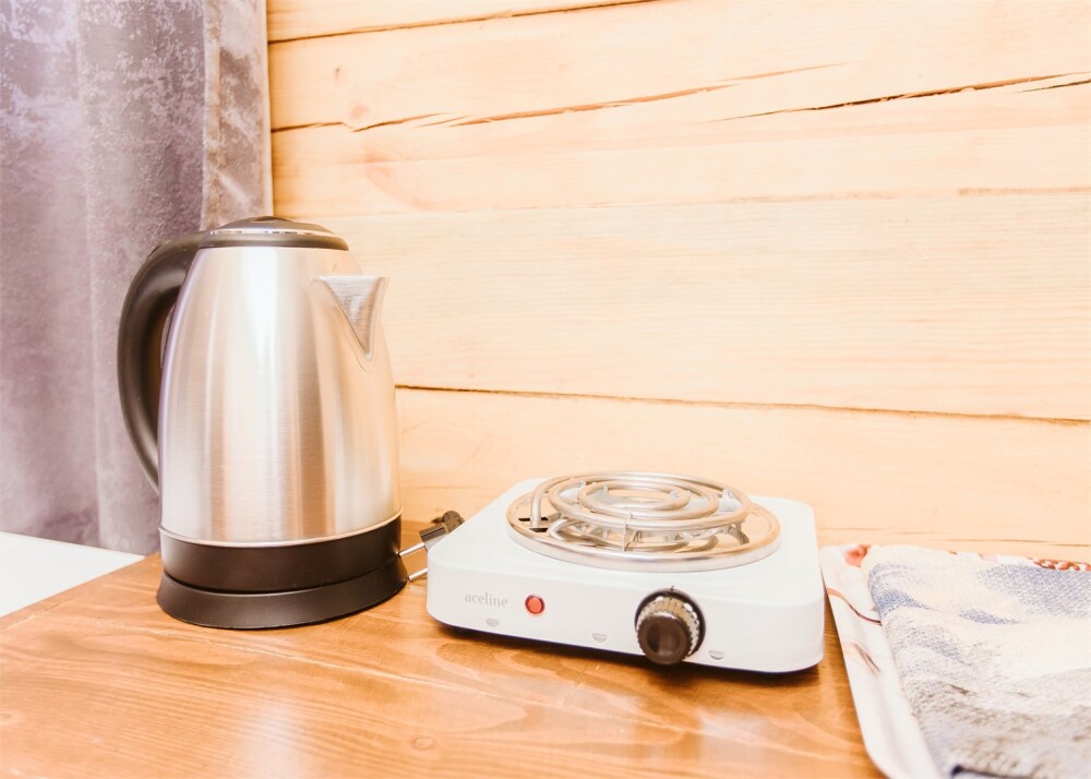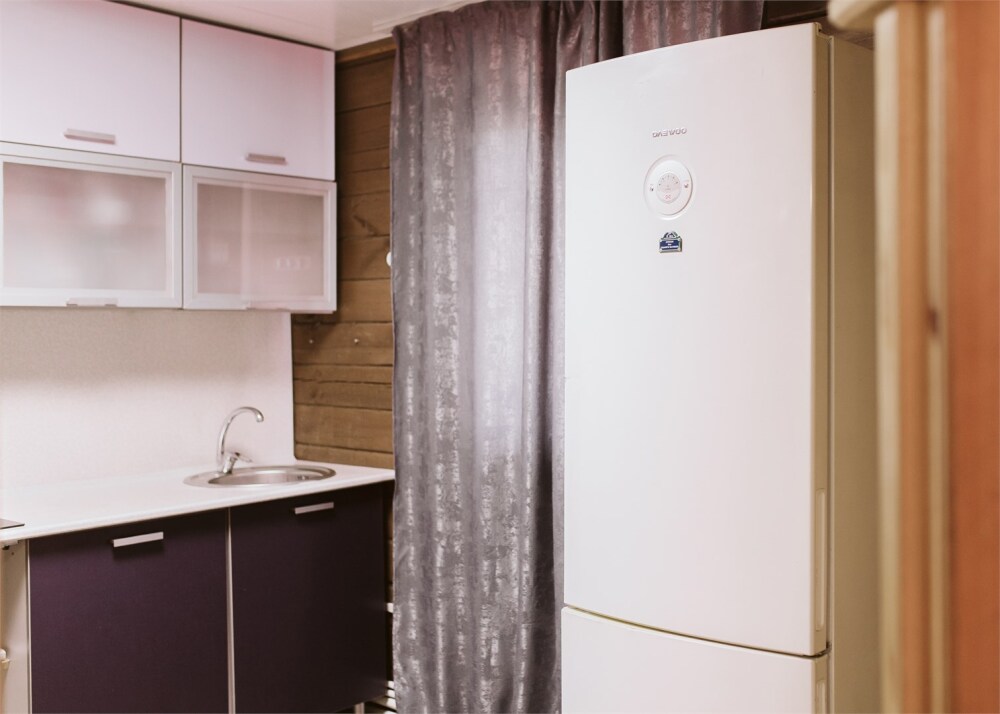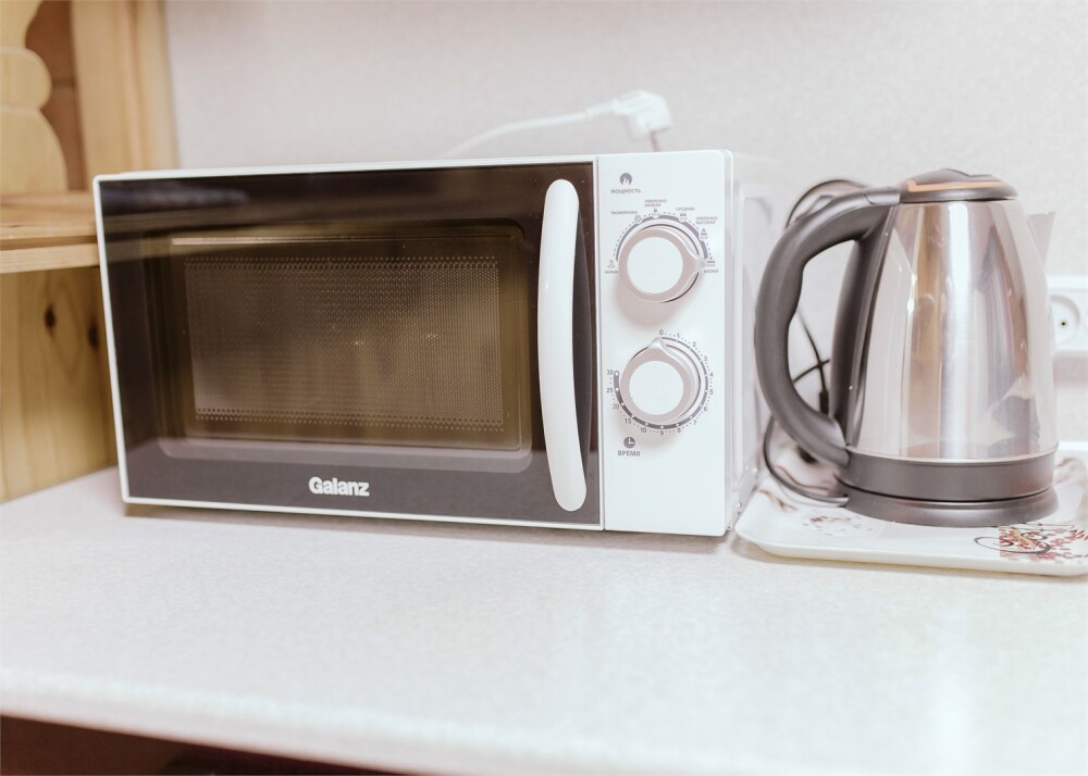 Холодильник, чайник.
