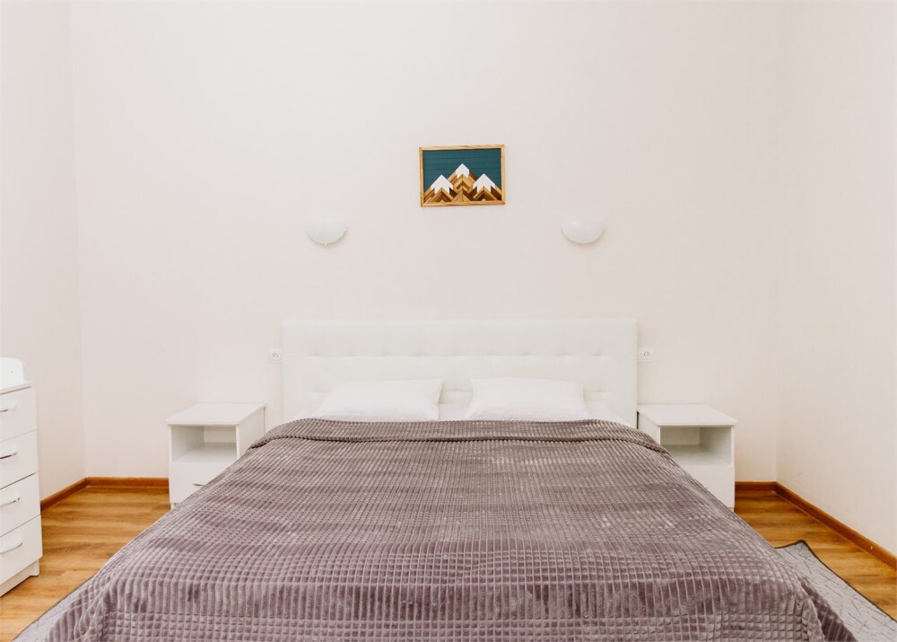 Белоснежное постельное белье, комплект полотенец, одноразовые тапочки. В ванной комнате душевая и туалет; набор гигиены (гель для душа, шампунь и кондиционер для волос, зубной набор, мыло, туалетная бумага), фен для волос.