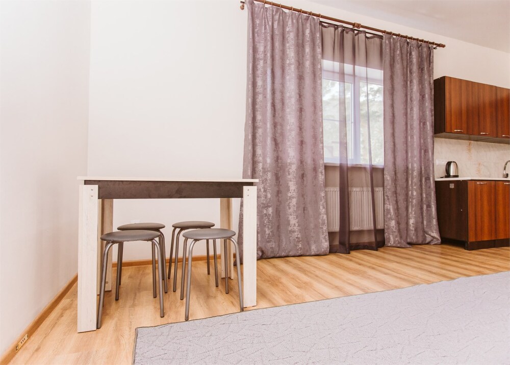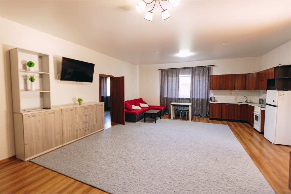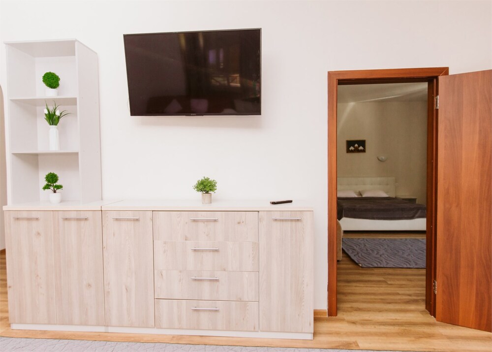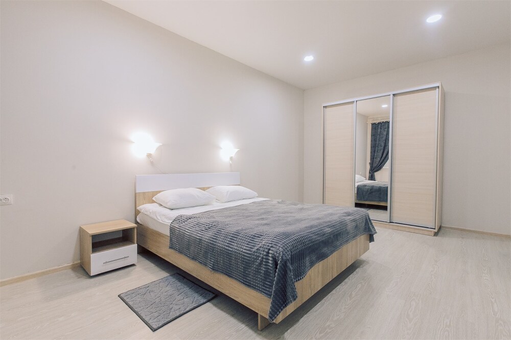 Две комнаты: гостиная: спальня. Постельное белье, комплект полотенец, одноразовые тапочки. В ванной комнате душевая кабина и туалет, набор гигиены (гель для душа, шампунь и кондиционер для волос, зубной набор, мыло, туалетная бумага), фен для волос.