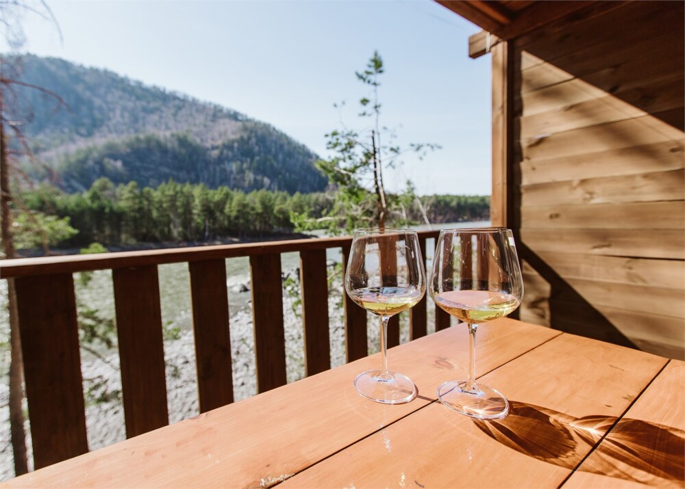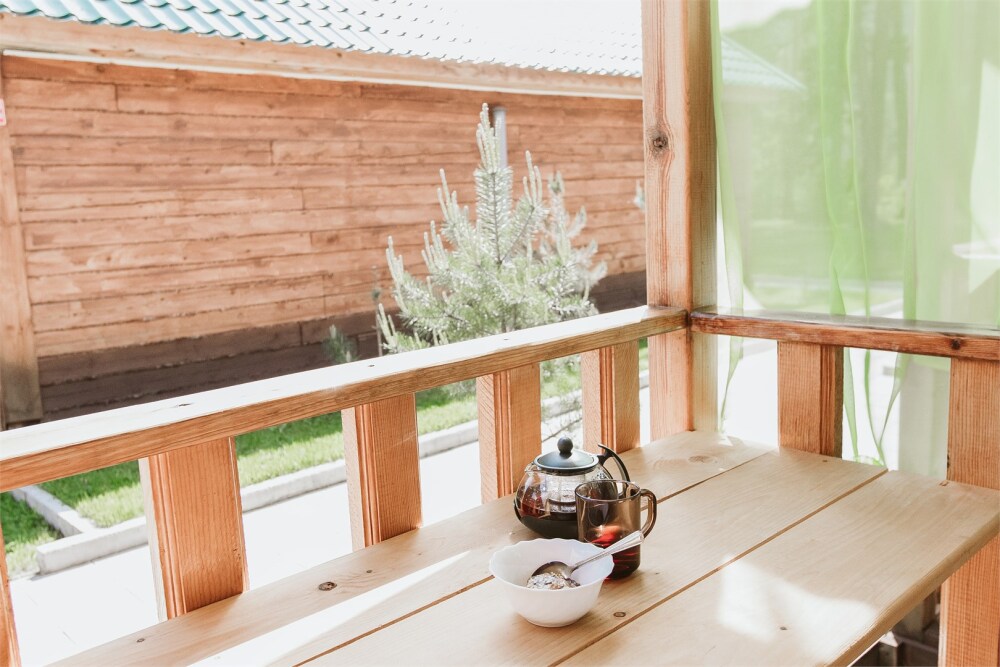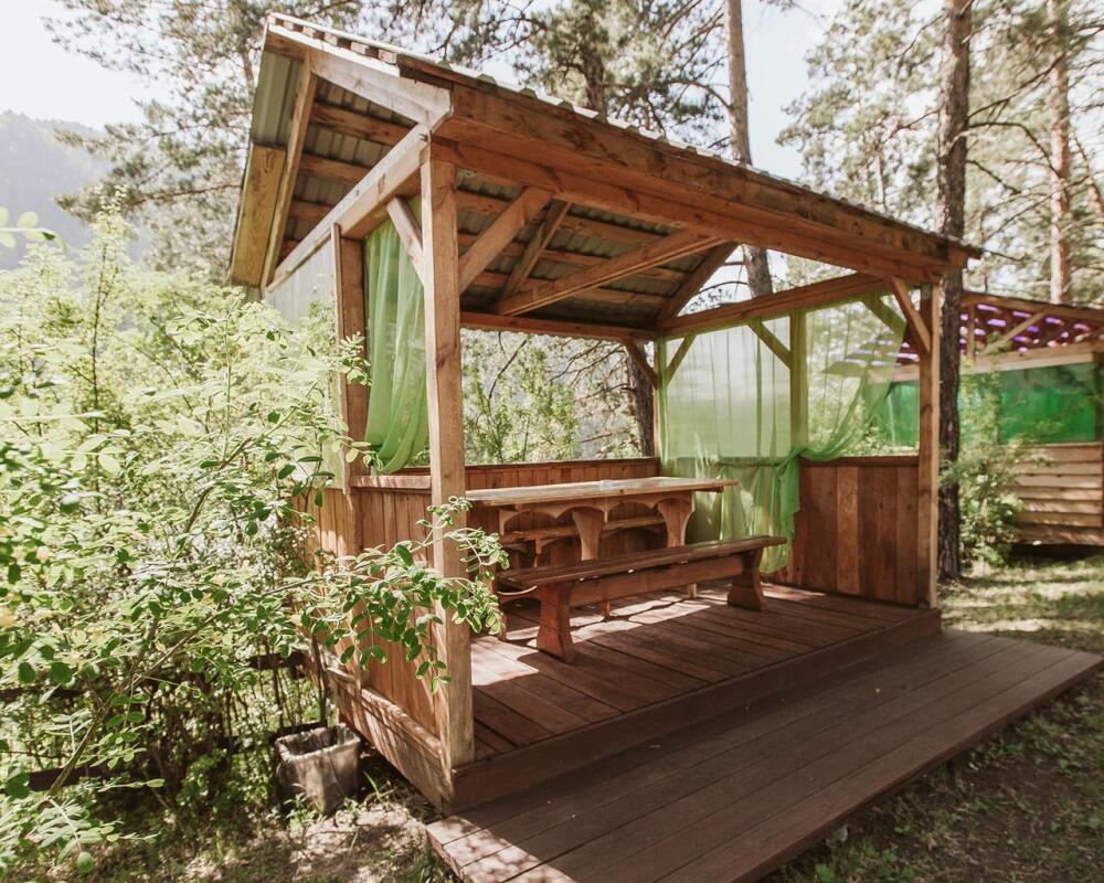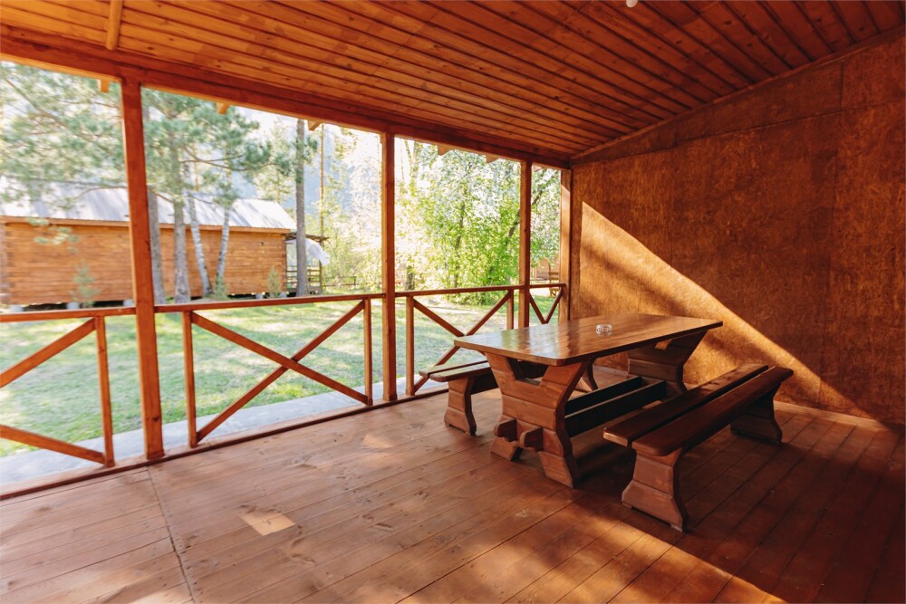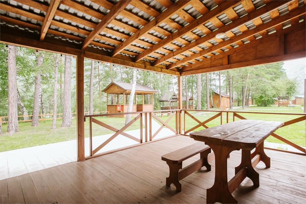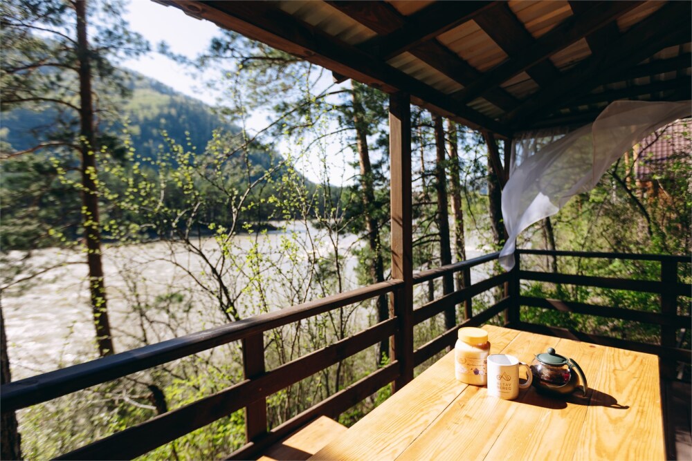 - Дом Катунь - собственная терраса с видом на горы и реку.