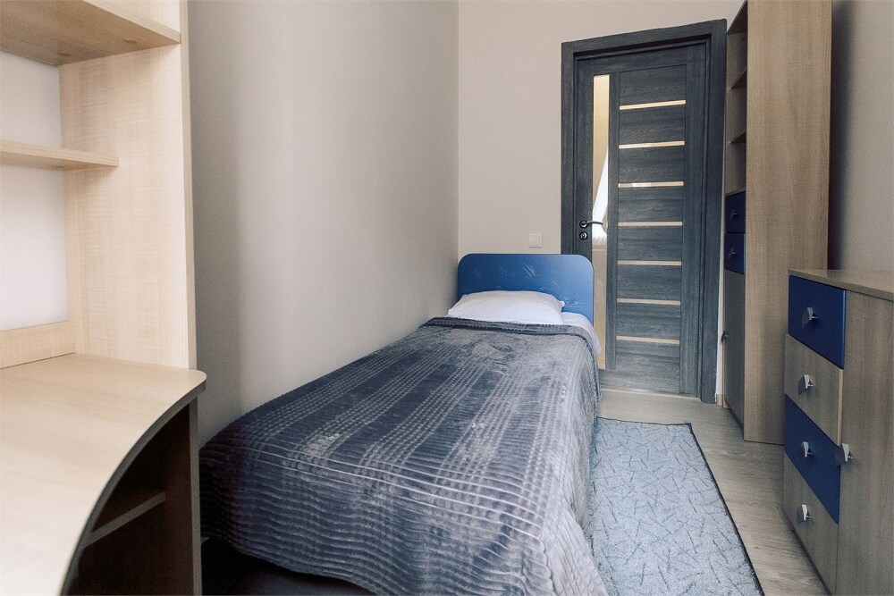 Спальня: 2 сп. (160х200) и 1 сп. (90х200) кровати, прикроватная тумба, комод;