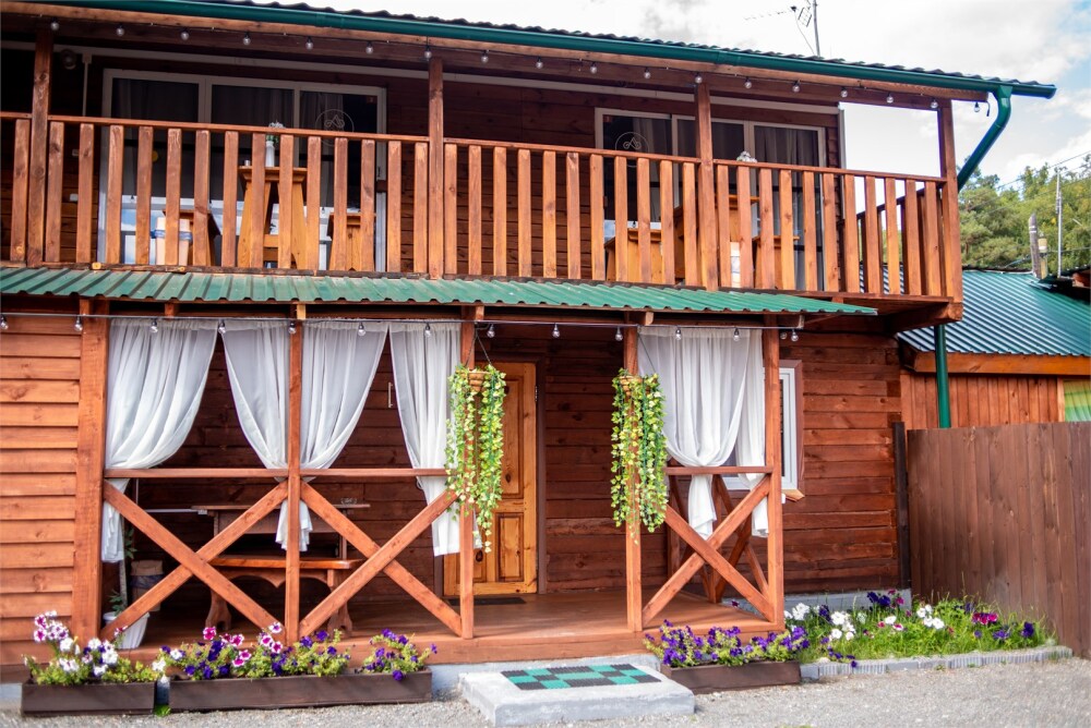 Со второго этажа открывается красивый пейзаж на горы и природу Алтая.