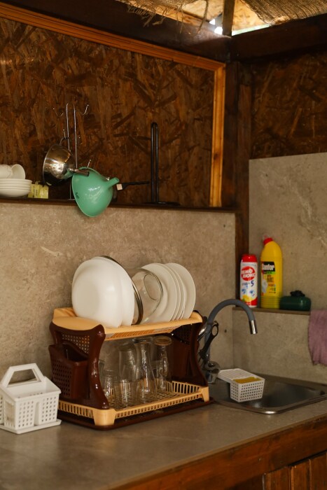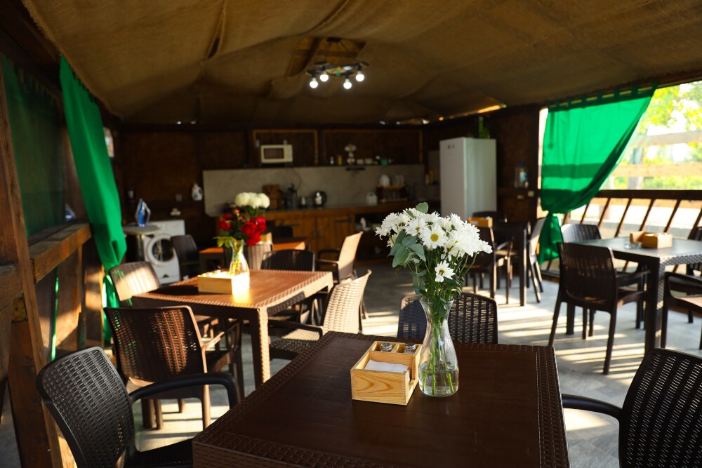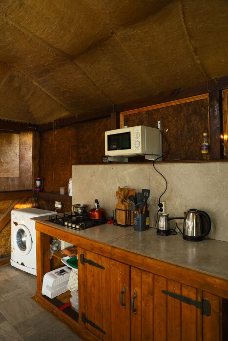 На территории эко-комплекса есть общая кухня-веранда, полностью оборудованная для самостоятельного приготовления пищи, стиральная машина, сушилки для одежды, зона барбекю. К услугам гостей открытый бассейн, бесплатная частная парковка, сад и терраса.