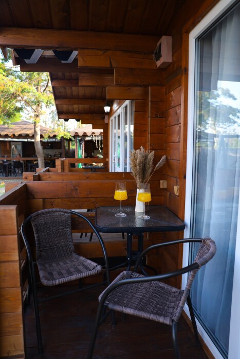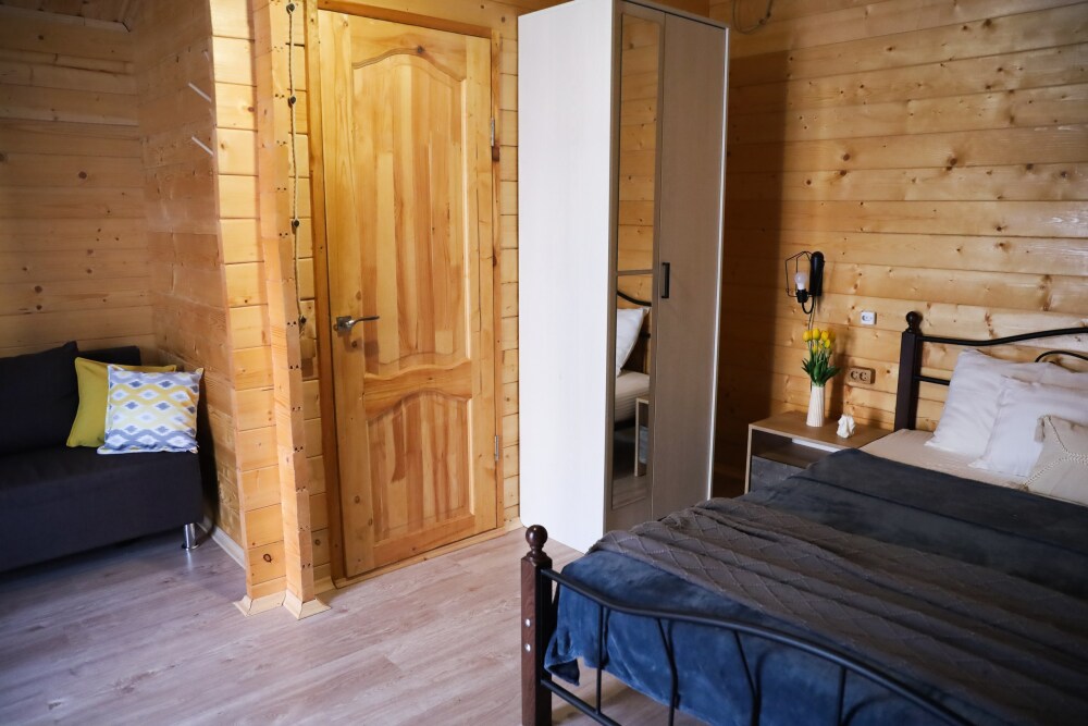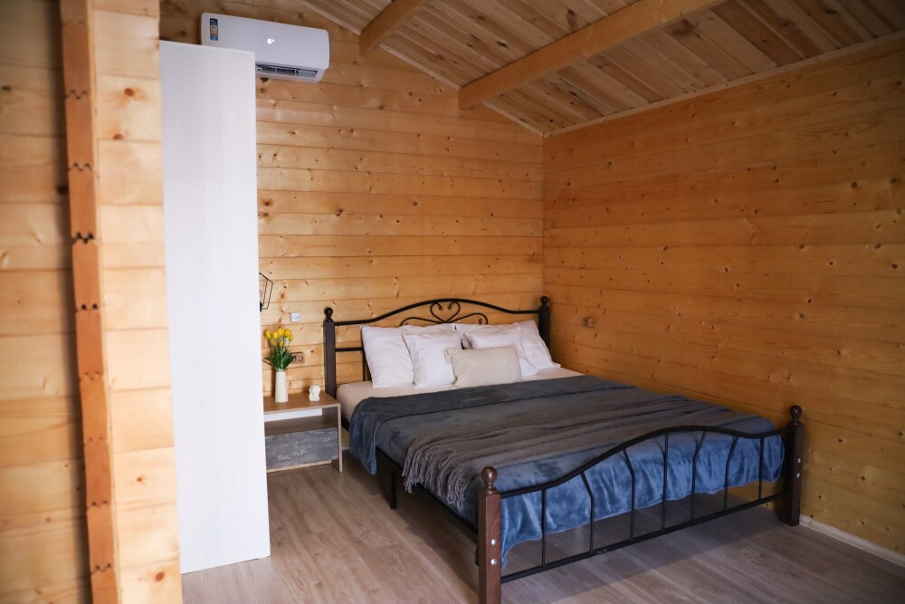 Для наших гостей мы предлагаем коттеджные домики, полностью оборудованные для комфортного проживания. Все домики оснащены кондиционером и телевизором с плоским экраном, смарт-тв, Wi-Fi. К услугам гостей шкаф для одежды и собственная ванная комната. Предоставляются полотенца и постельное белье. Есть фен, чайник, холодильник. У каждого домика есть своя веранда на которой расположены стол и стулья, для отдыха на свежем воздухе.