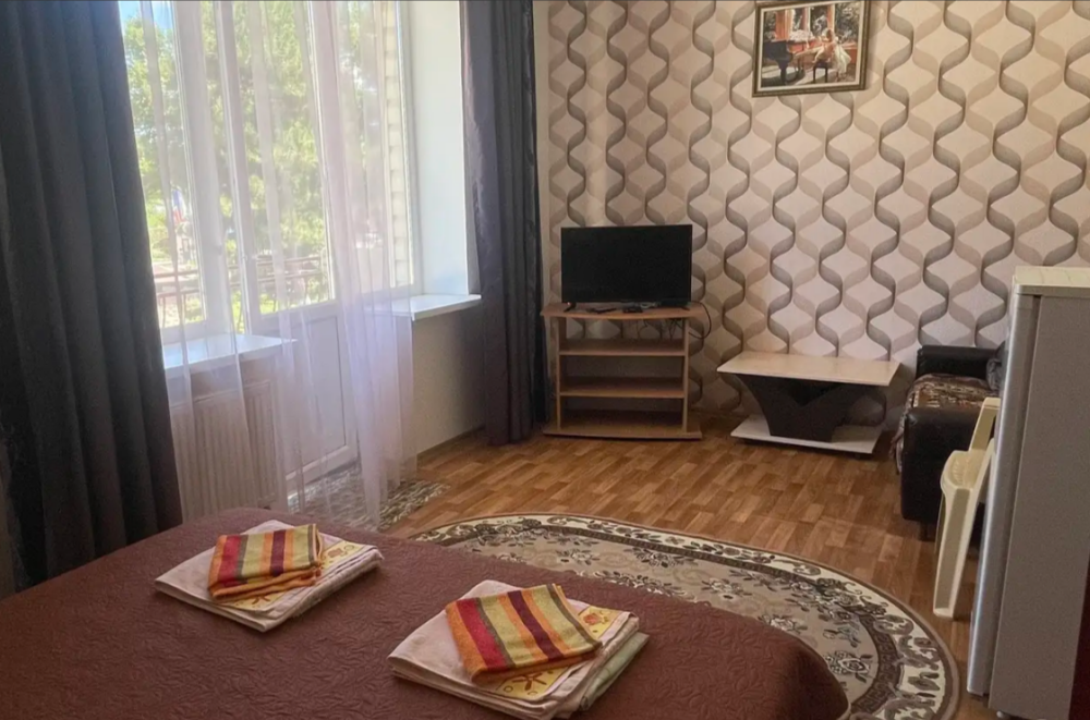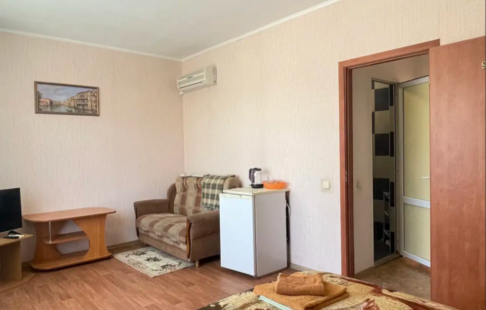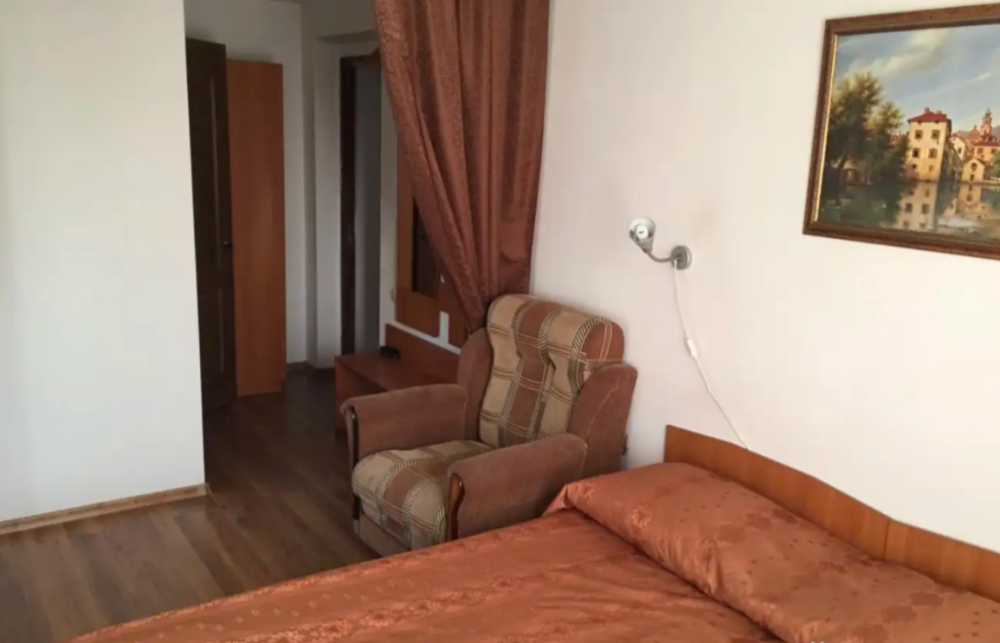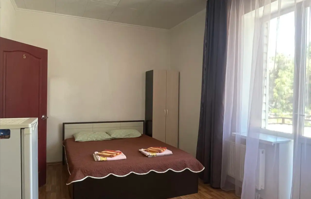 Номера просторные, от 15 до 25 кв м. В каждом номере душ или ванна, туалет, холодильник, телевизор, кондиционер, чайник. Этаж и вид из окна не обсуждаться заранее.