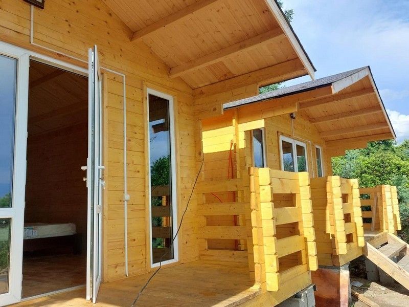 У нас домики с удобствами. Размещение в домиках 2 взрослых и 2 детей.