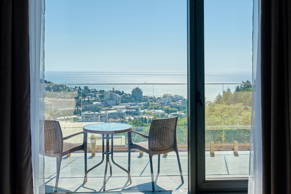 Увидеть море и центр Ялты не вставая с кровати - парящая над морем стильная студия в новой вилле комфорт-класса с закрытой территорией с панорамным остеклением и балконом, выходящим на море и город поможет Вам исполнить эту мечту.