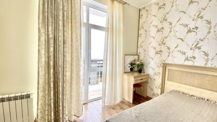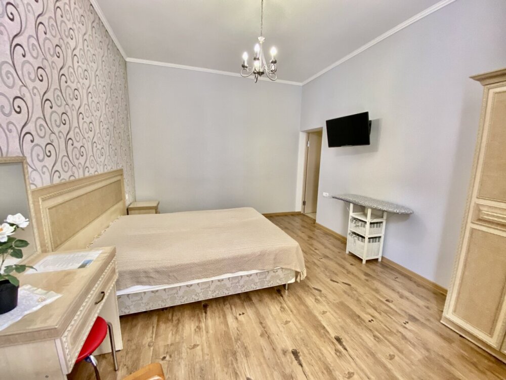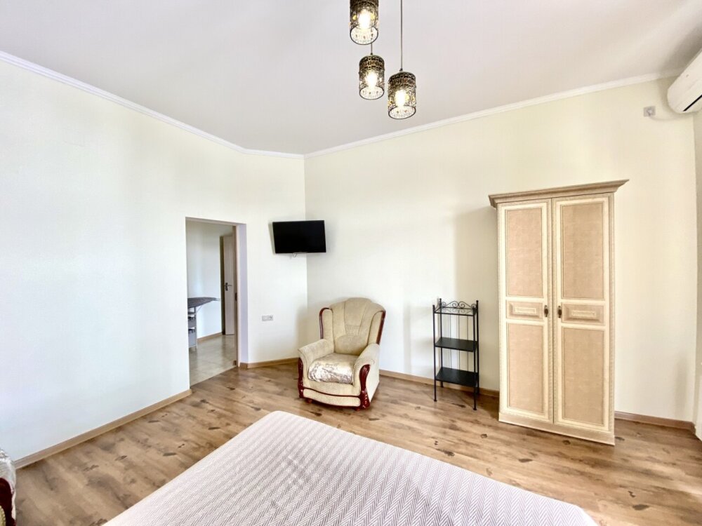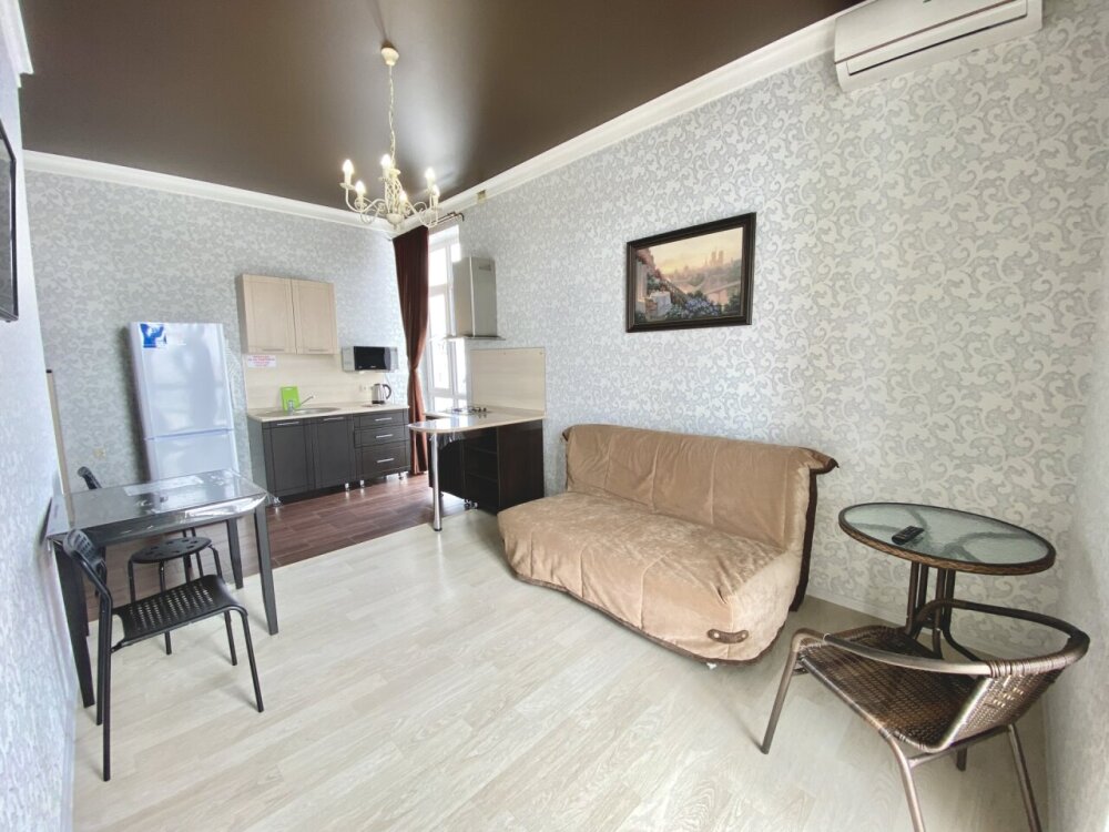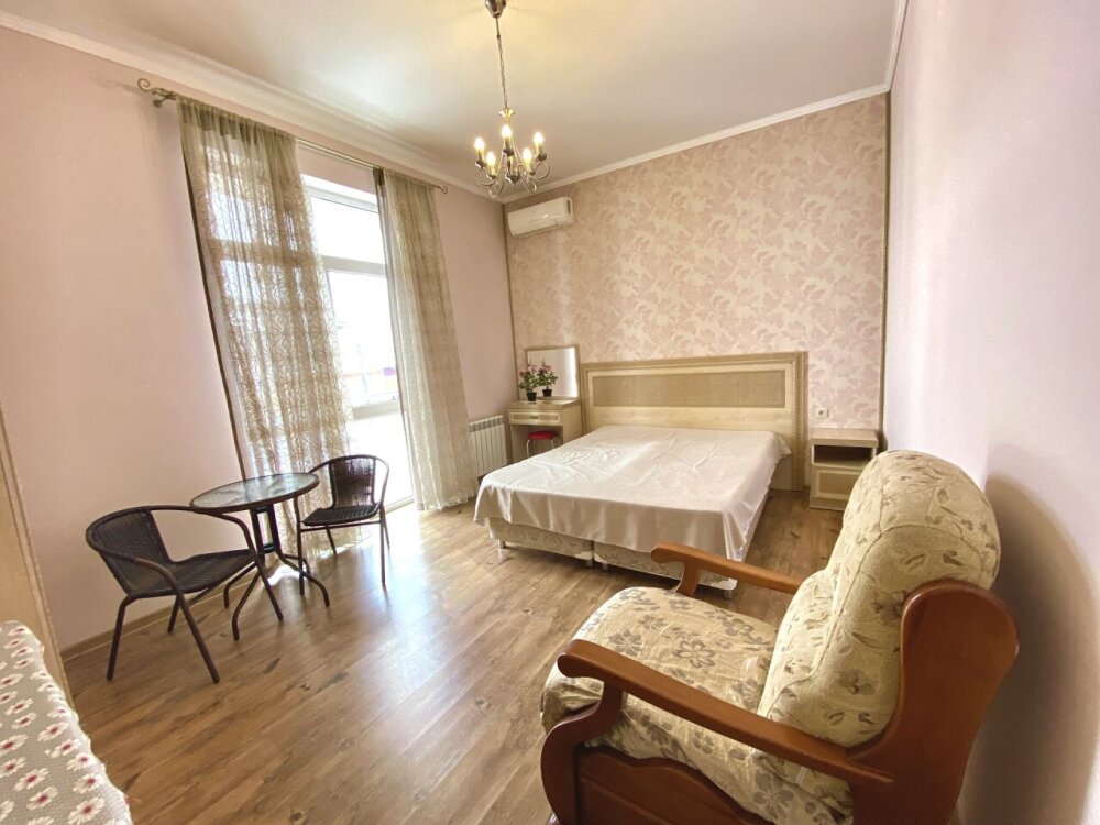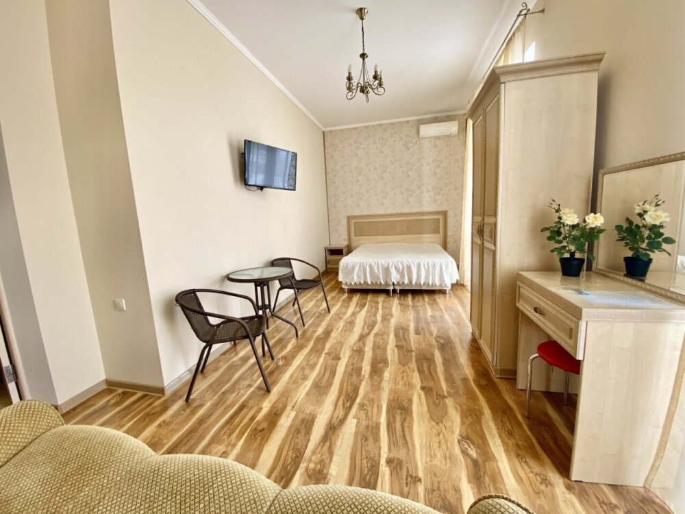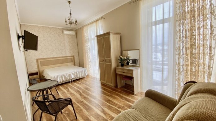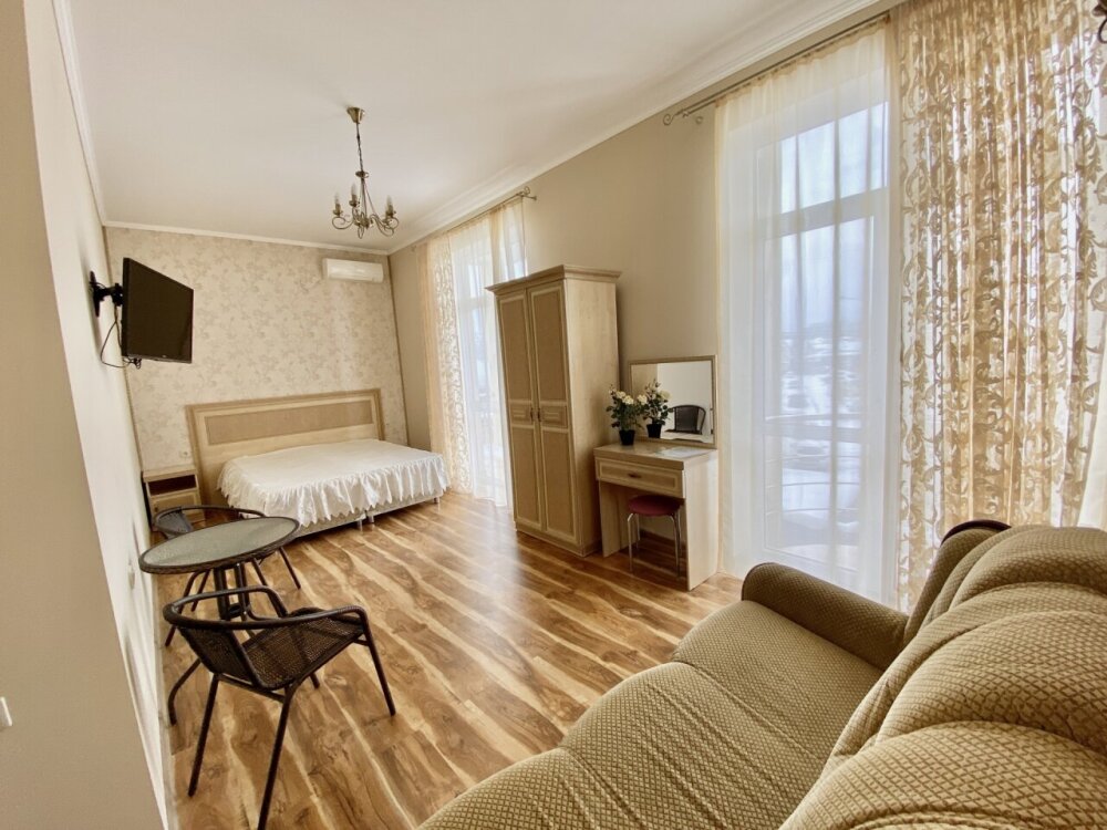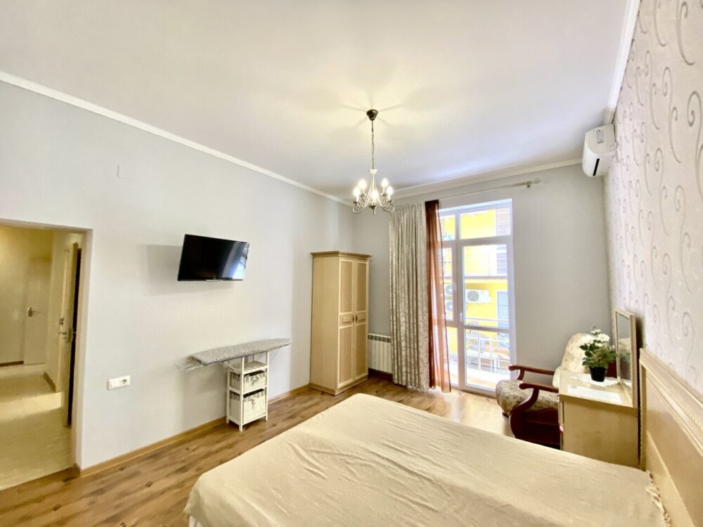 Апартаменты включают в себя отдельную комнату с двухспальной кроватью и кухня гостиная с раскладным двухспальным диваном. В каждой комнате свой просторный балкон.