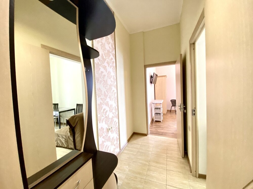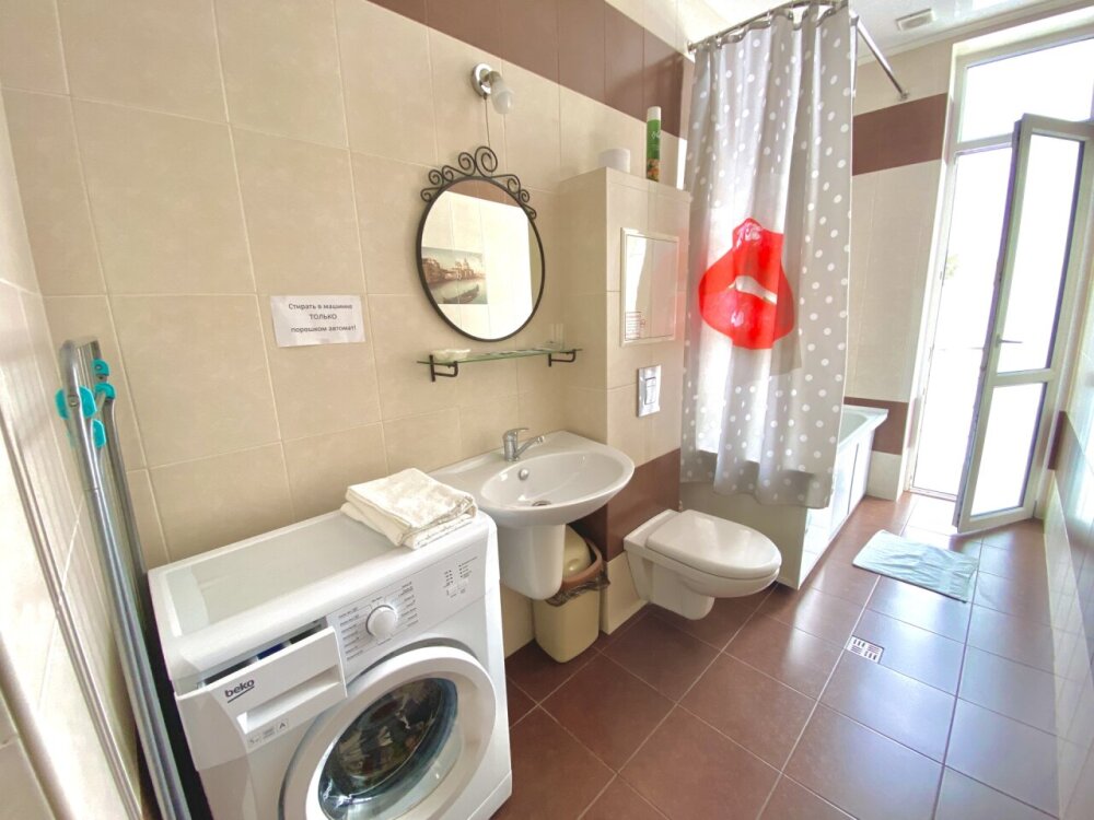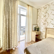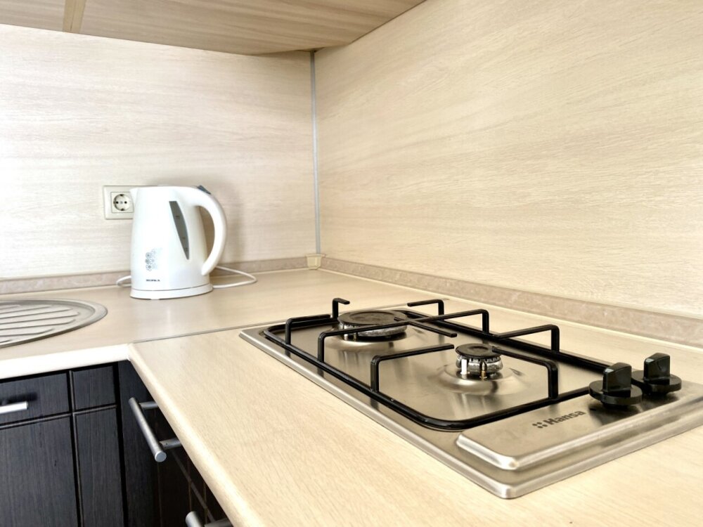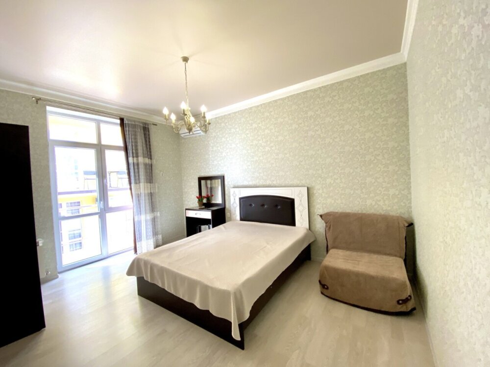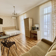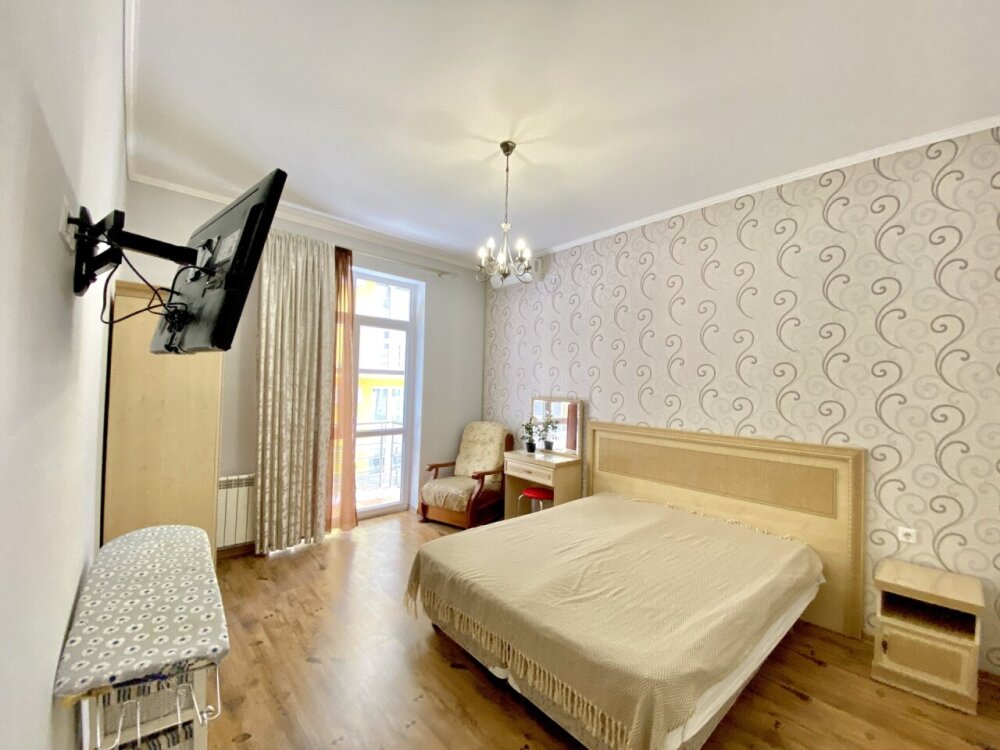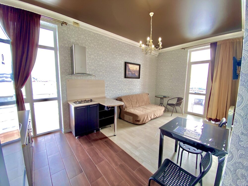 Апартаменты включают в себя отдельную комнату с двухспальной кроватью и кухню-гостиную с раскладным двухспальным диваном. В каждой комнате свой просторный балкон. Имеется все необходимое для проживания.
