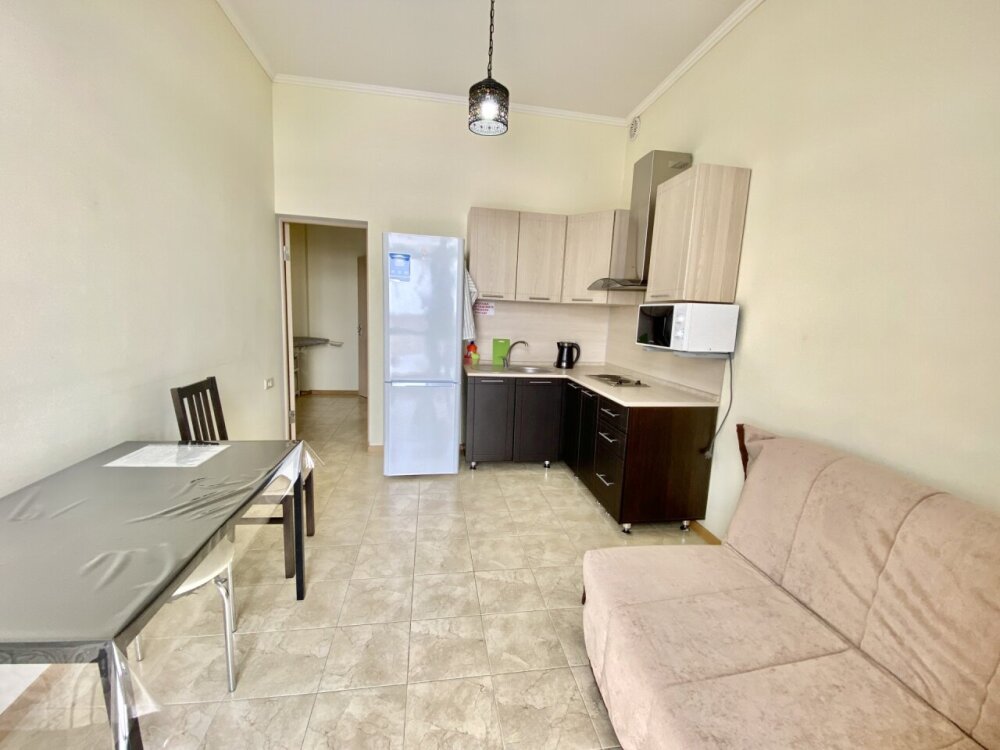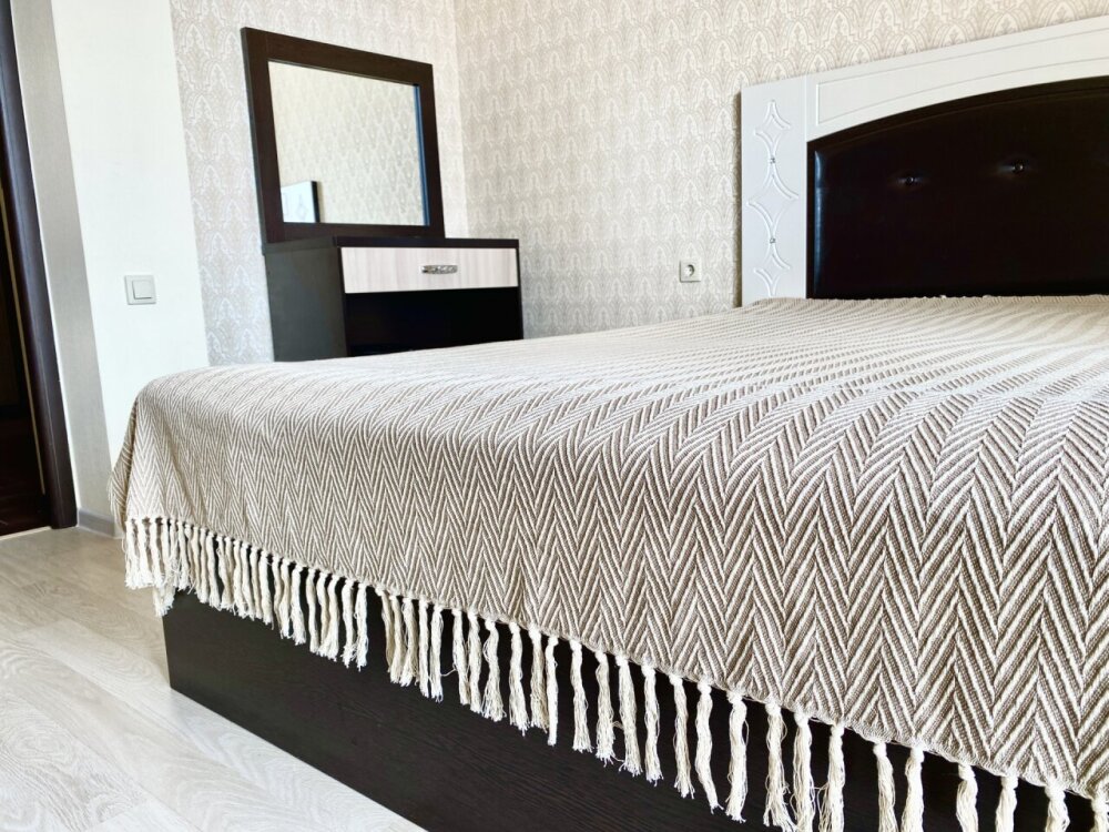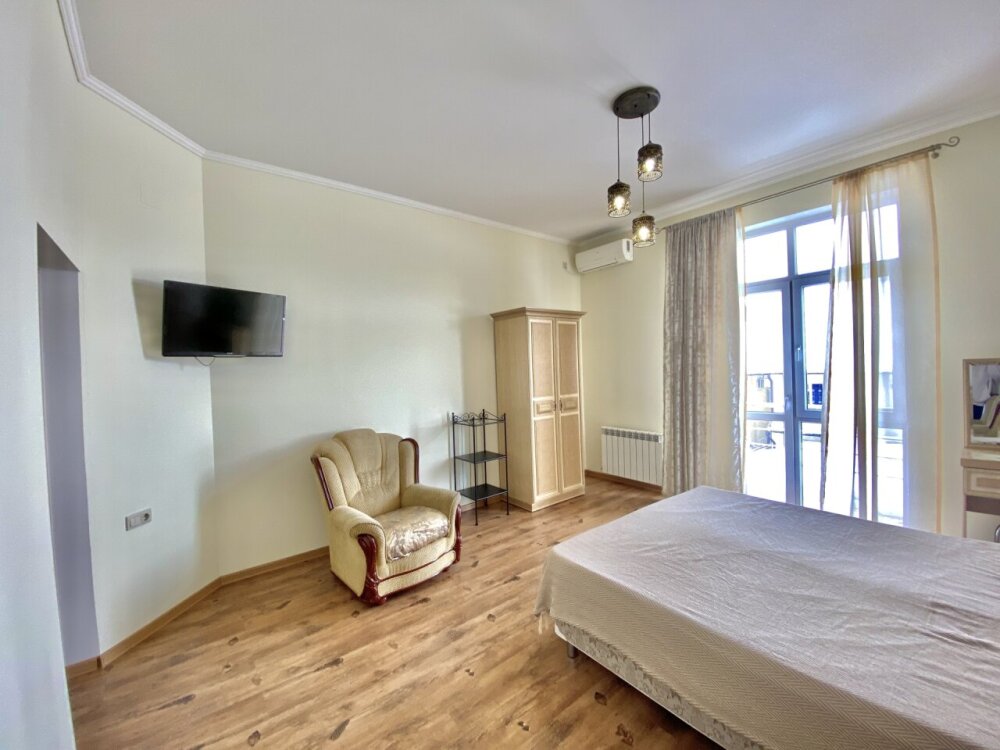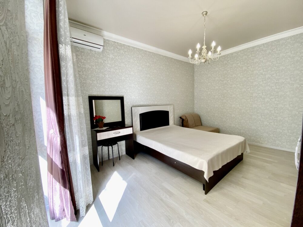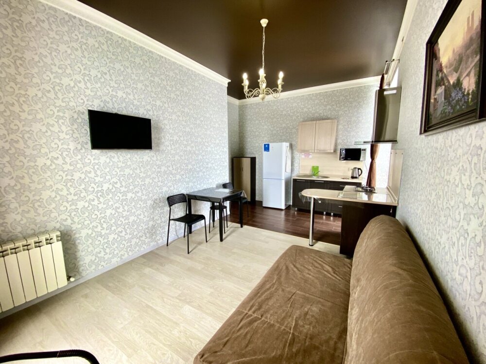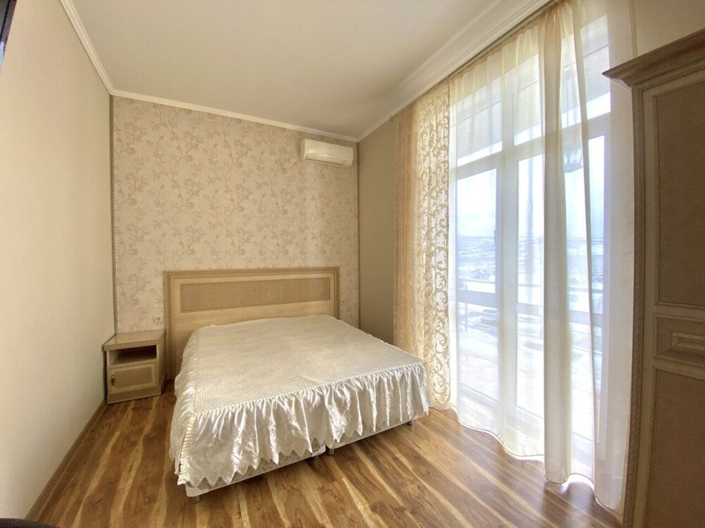 Апартаменты включают в себя отдельную комнату с двухспальной кроватью и кухню-гостиную с раскладным двухспальным диваном. В каждой комнате свой просторный балкон. Имеется все необходимое для проживания.
