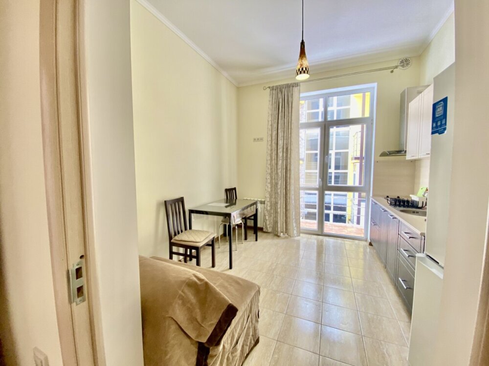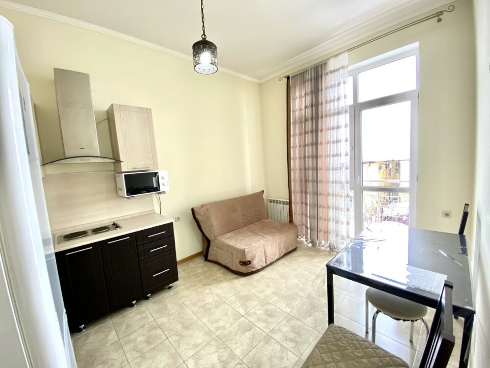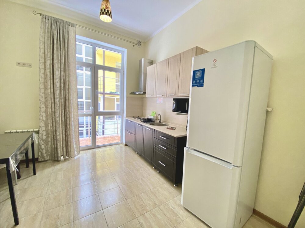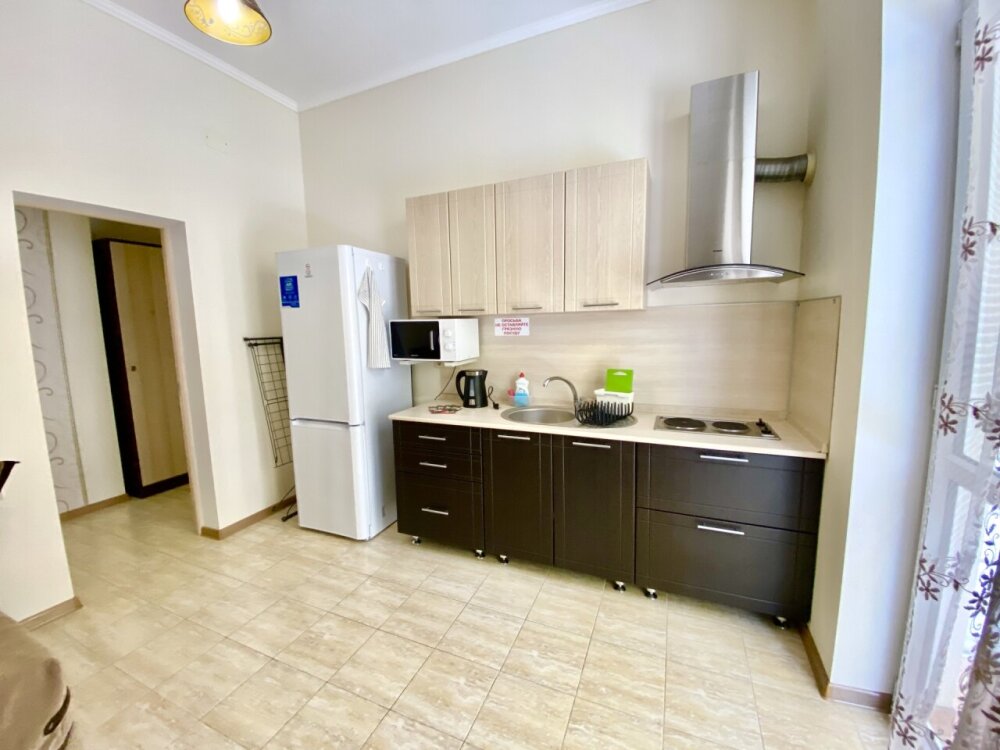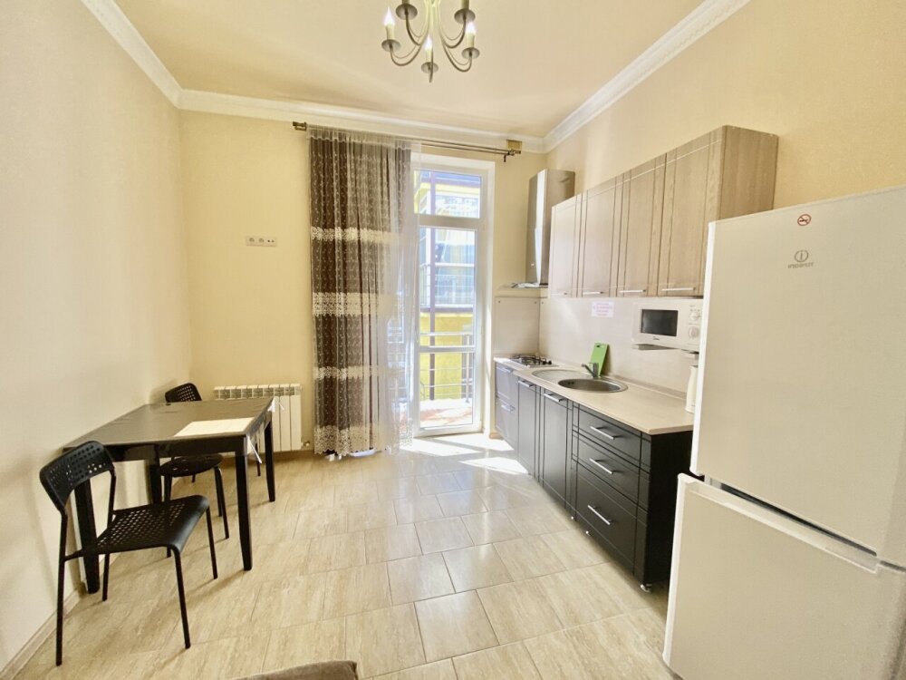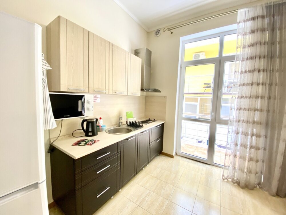 Апартаменты включают в себя отдельную комнату с двухспальной кроватью и кухню-гостиную с раскладным двухспальным диваном. В каждой комнате свой просторный балкон. Имеется все необходимое для проживания.