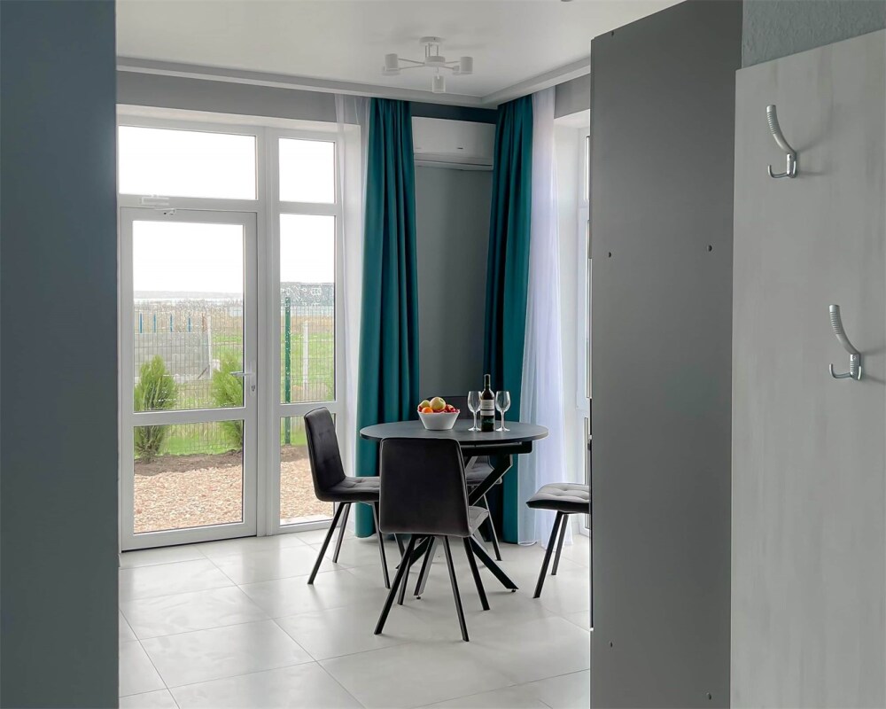 Гостевой дом «Villa Lazurit» находится у самого Черного моря (350 метров от пляжа «Белая Жемчужина») в поселке Оленевка, расположенном на мысе Тарханкут, который является Национальным заповедником.