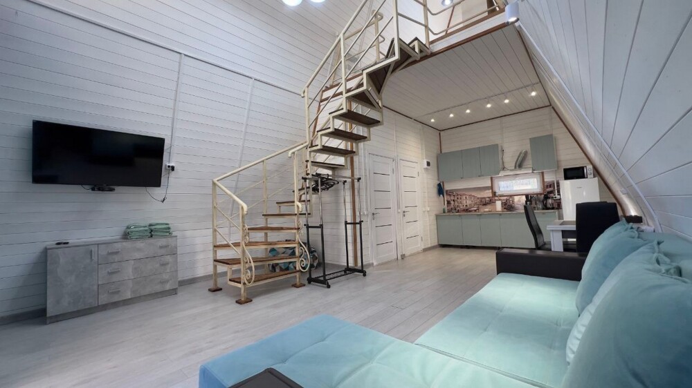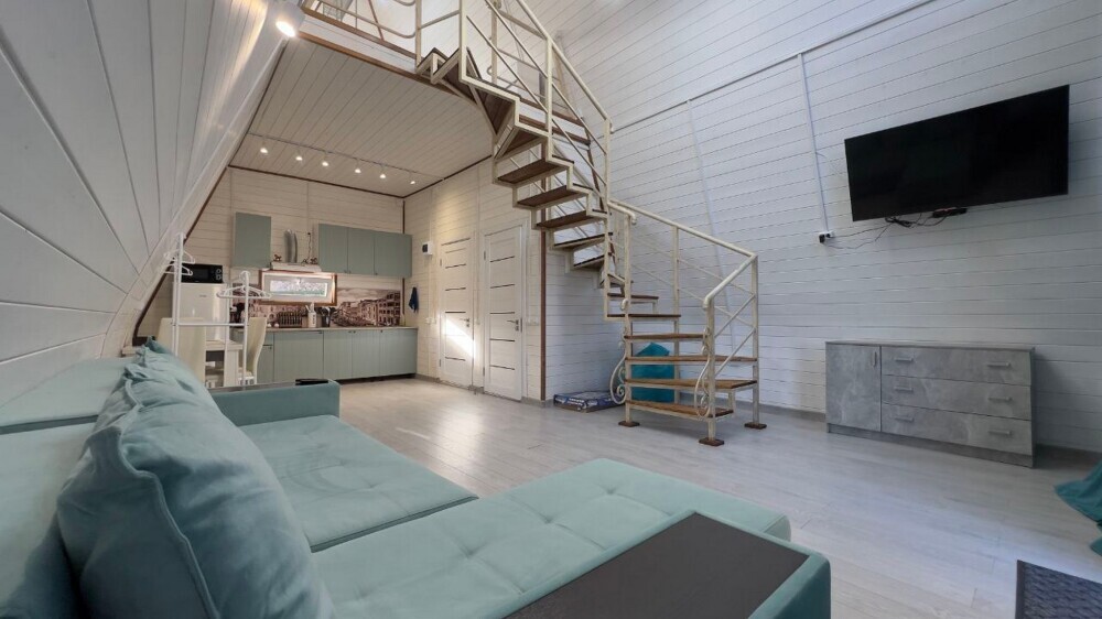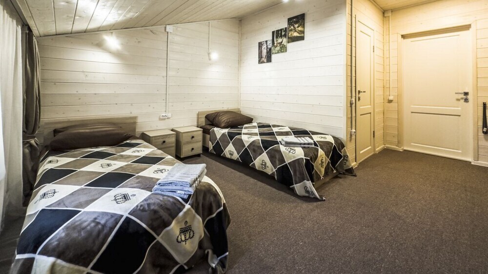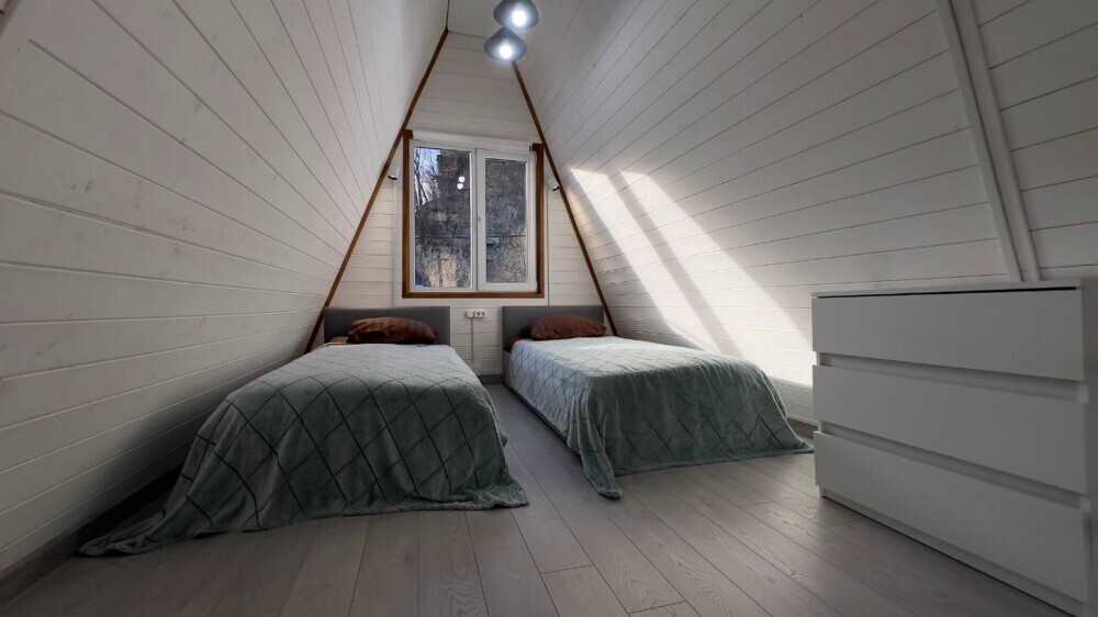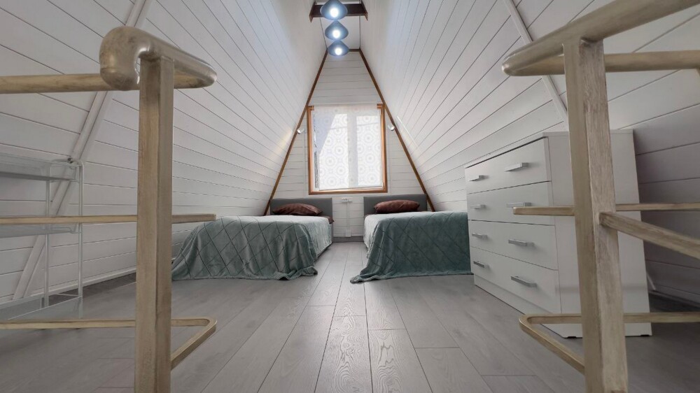В доме: 1 двуспальный диван, (дополнительная кровать) на втором ярусе 1 двуспальная кровать.