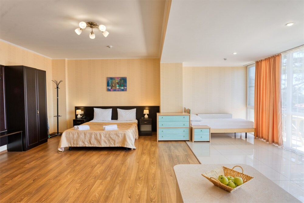 Возможны четвертое и пятое дополнительные места для детей от 0 до 6 лет. Оплачиваются отдельно при заезде. Апартаменты расположены на 3 этаже отеля.