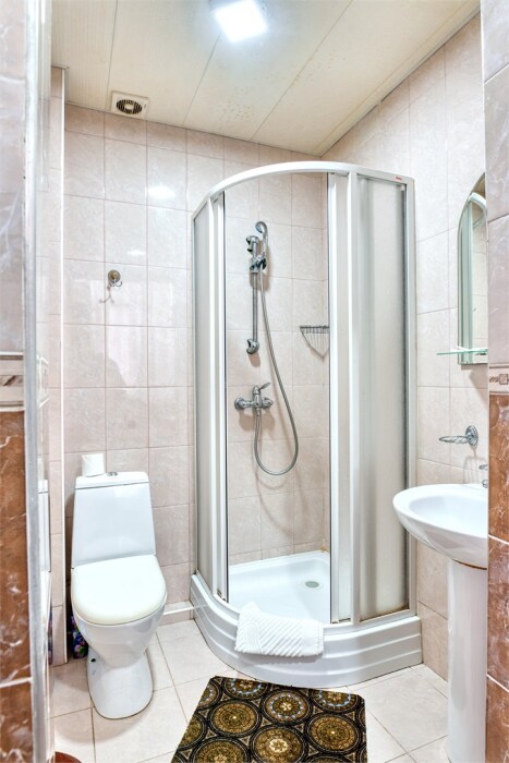 Вторая комната: уютная спальная зона с рабочим местом, ванная комната с санузлом, оборудованным душевой кабиной и ванной.
