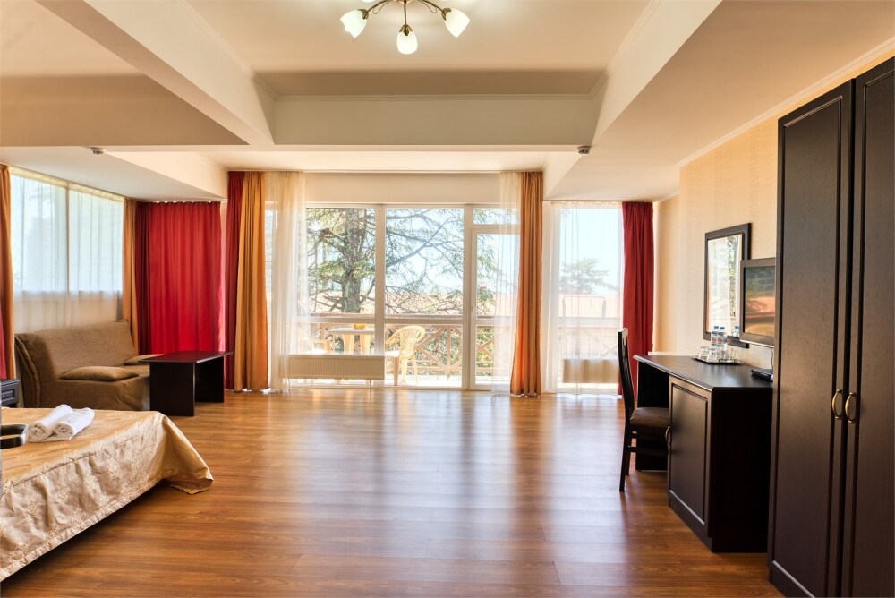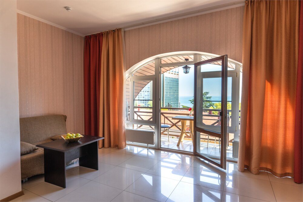 Номер состоит из 2-х уютных совмещенных зон . Номер оснащен широкой террасой с прекрасным видом.
