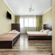 Мы предлагаем различные категории комфортабельных номеров: двухместные, трехместные и четырехместные, идеально подходящие для семейных и дружеских отпусков. (Данная категория номеров расположена на 1м и 2м этаже и имеет общий балкон.)