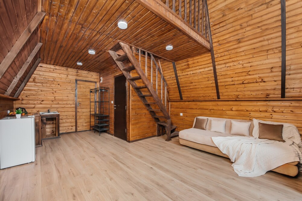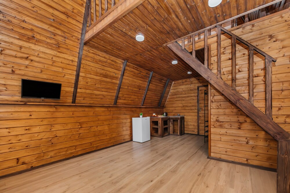 Мини отель шале «БроНау Reprua» предлагает комфортабельные двухэтажные домики, которые вмещают до 5-х гостей, что делает их идеальным местом для семейного отдыха или дружеских встреч. Каждое шале оформлено с заботой о деталях, чтобы создать атмосферу уюта и спокойствия. В каждом шале есть кухонный уголок для Вашего удобства.