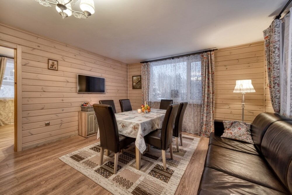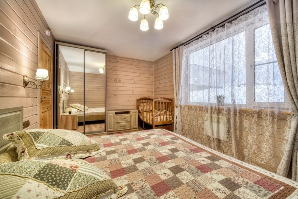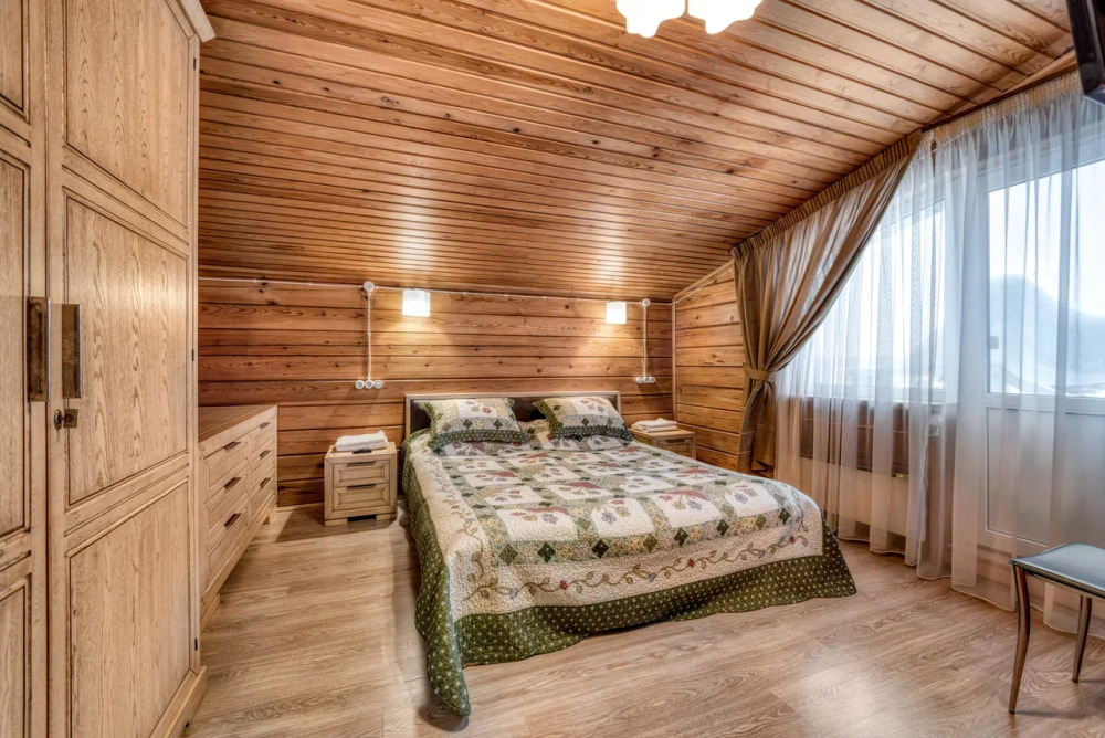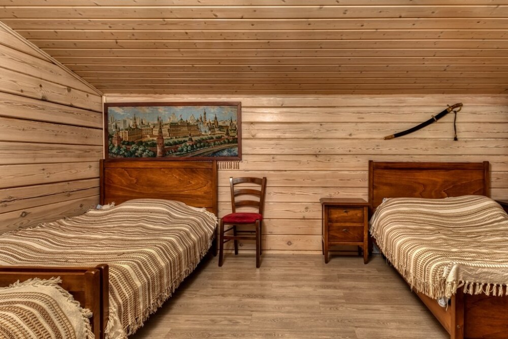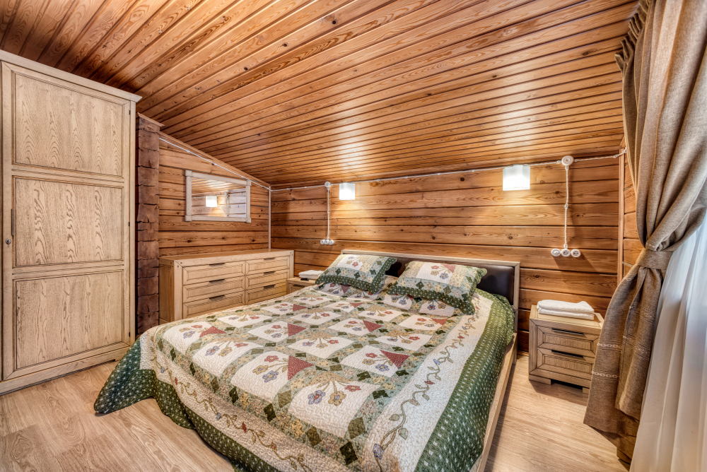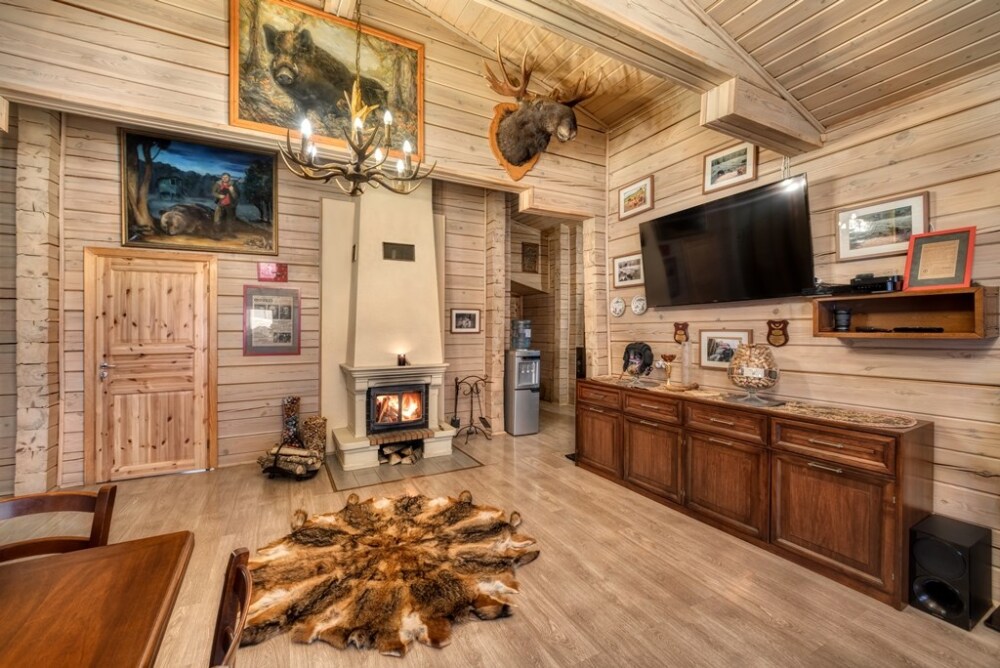 Это большой (200м2) и уютный коттедж отличается неповторимым колоритом и самобытностью в стиле охотничьего дома. В доме есть абсолютно всё для комфортного проживания 8-10 гостей. Светлая веранда оснащена садовой мебелью. В центре гостиной почётное место занимает массивный стол, который собирает гостей у большого камина. Три спальни смогут разместить до 10 гостей. В доме есть современная просторная кухня с плитой, духовкой, микроволновой печью, холодильником и посудой для сервировки и приготовления
