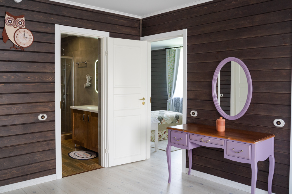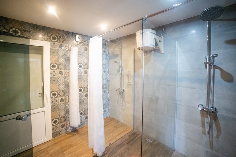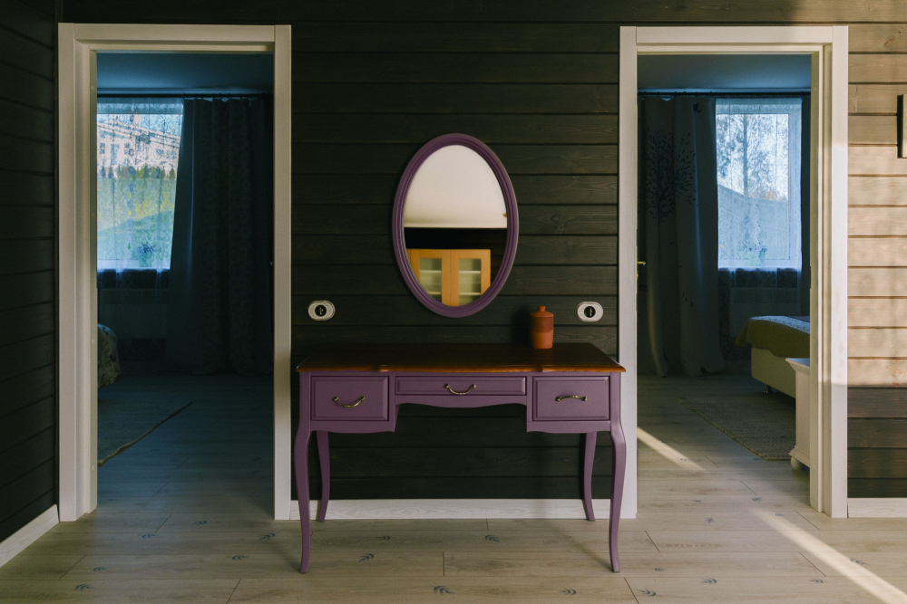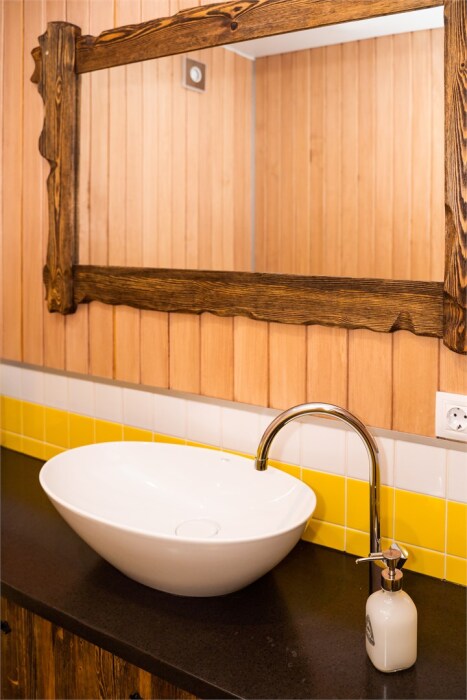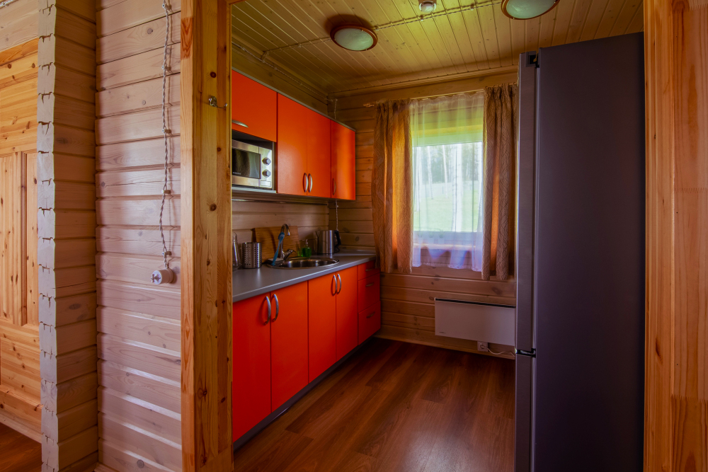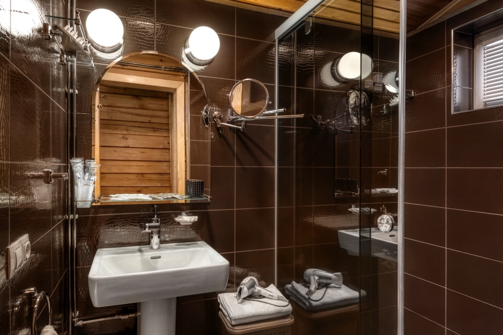Дом Баня аналогичен Большим домам в Парк-отеле: с просторной меблированной гостиной с кухонной зоной. В Доме есть спальня с двуспальной кроватью. Из гостиной вход в парилку.