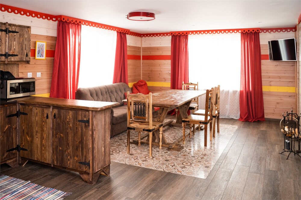 В радиусе 45 км нет ни одного промышленного предприятия, ближайшая автомагистраль расположена в 30 км. Чтобы провести часть своего отпуска наедине с собой или со своими любимыми людьми, выберите один из 23 гостевых дома. В каждом номере есть все необходимое для комфортного отдыха: кухня, телевизор, столовая зона, уютные спальные места, веранда, подготовленная для проведения времени под открытым небом, детская кроватка и стульчик для кормления (предоставляются по запросу гостей).