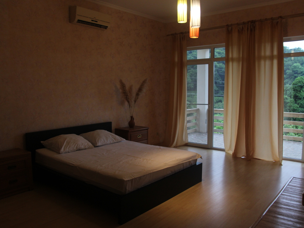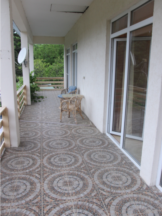 Наш современный дом расположен в 2 км от моря, на возвышенности, в экологическом тихом месте, в окружении цитрусовых садов и леса.