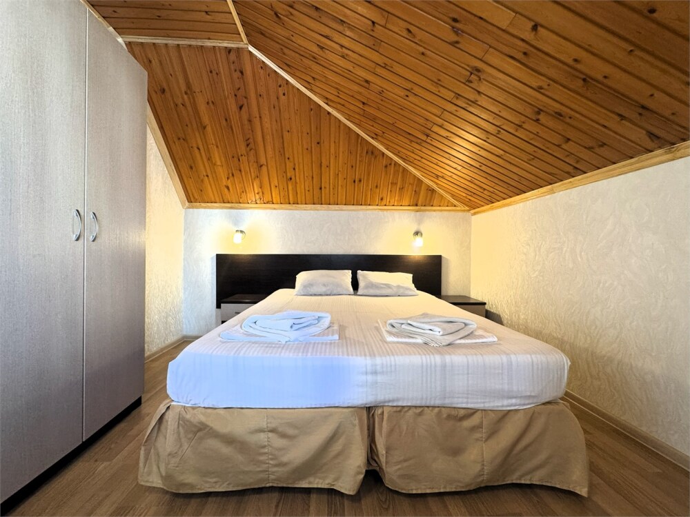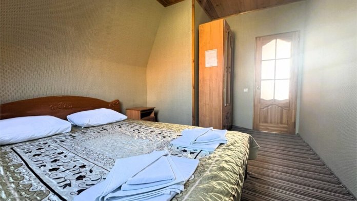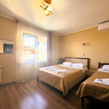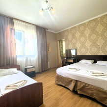 Двухместный номер со всеми удобствами с возможностью размещения третьего гостя на доп. месте. Один ребёнок до 5 лет — можно без отдельного спального места.