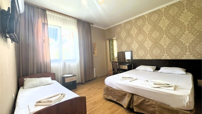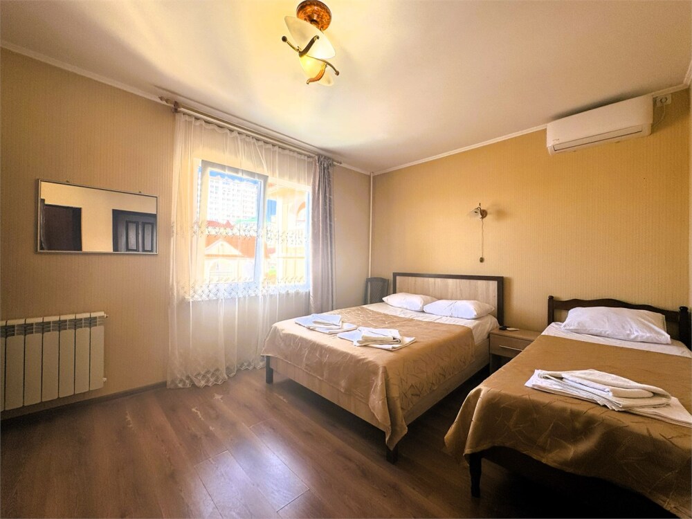 Трехместный номер со всеми удобствами. Один ребёнок до 5 лет — можно без отдельного спального места.
