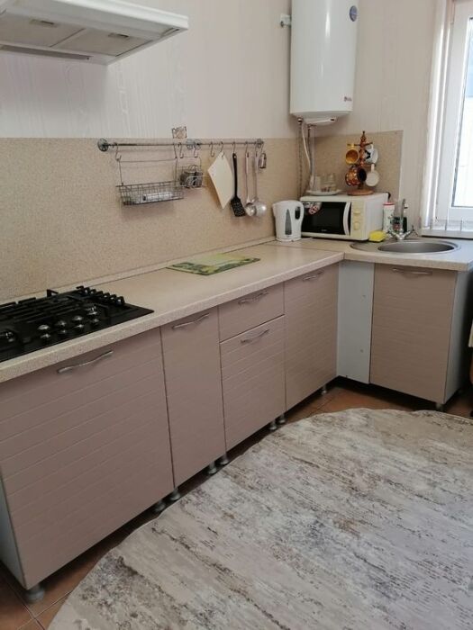 Кухонное оборудование: газовая плита, посуда и принадлежности, столовые приборы.