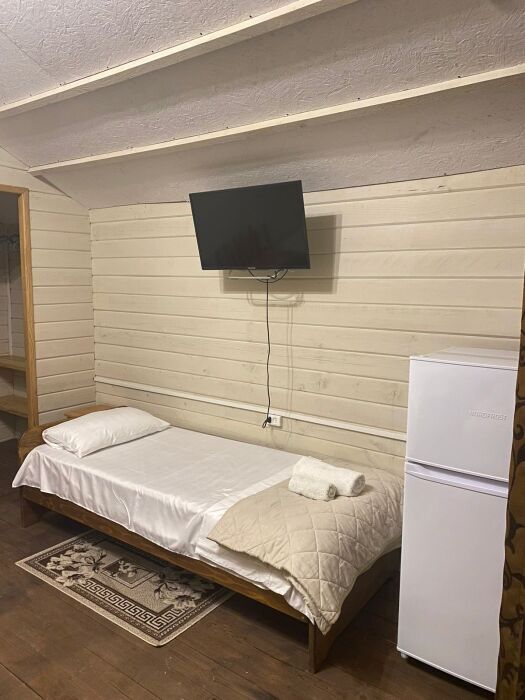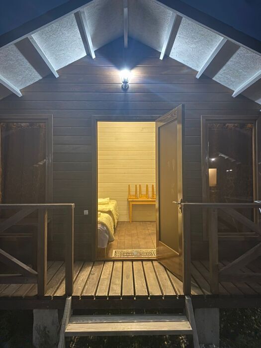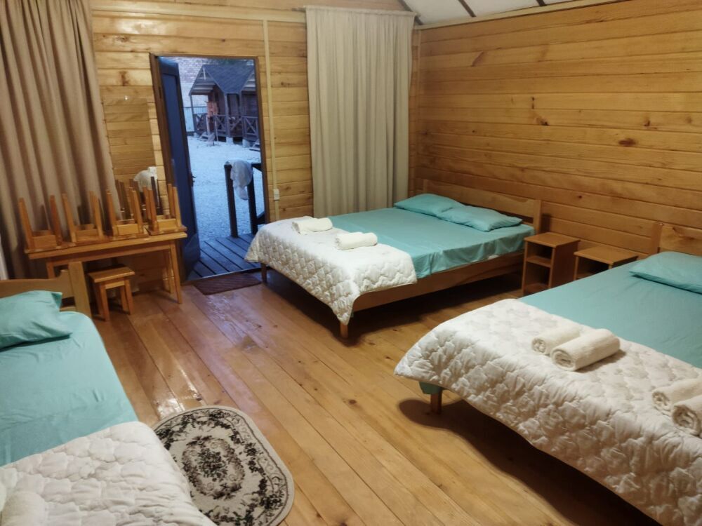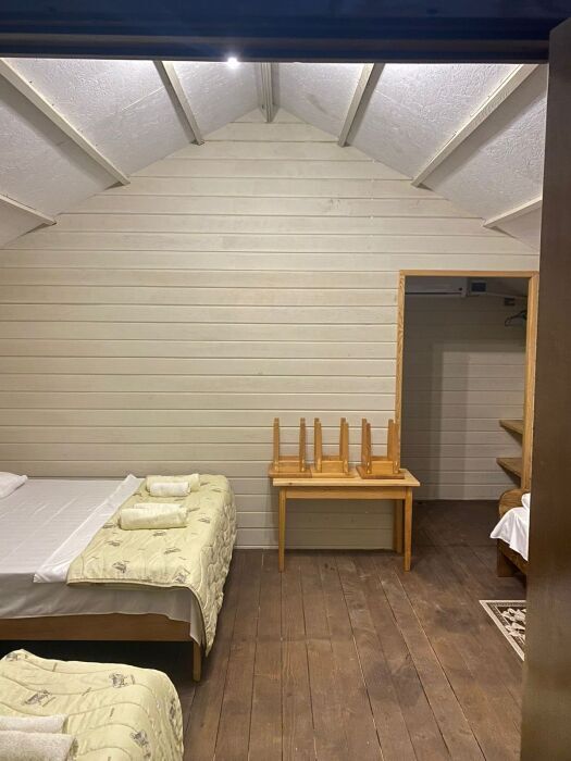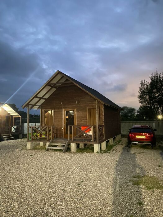 На территории комплекса располагается 9 стандартных коттеджей (4 спальных места) и 1 большой коттедж (5 мест), а также зона парковки и общая кухня. В домиках есть мягкая мебель, санузел, кондиционер, Wi-Fi, телевизор, холодильник, гардеробная и терраса для отдыха. Питание самостоятельное, для гостей представлена общая кухня со всеми необходимыми кухонными принадлежностями.