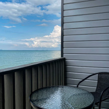 Из минусов: в номере живут муравьи, которые выходят на сладкое по ночам, кровать двуспальная собрана из односпальных и постоянно разъезжается. На веранде сломаны качели, но их не чинят и не убирают, что портит вид. Для покупок и приготовления еды придется ехать на машине. Нам не понравилось, что некоторые отдыхающие из других отелей ходили через наш двор. Море с медузами, но это не зависит от отеля.