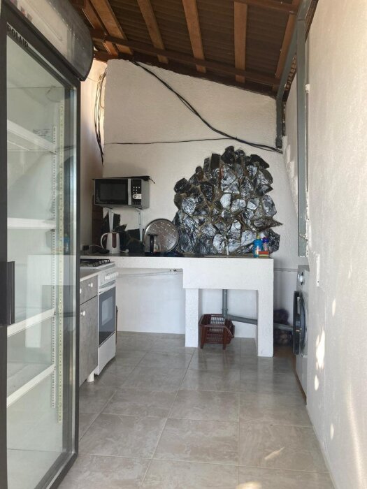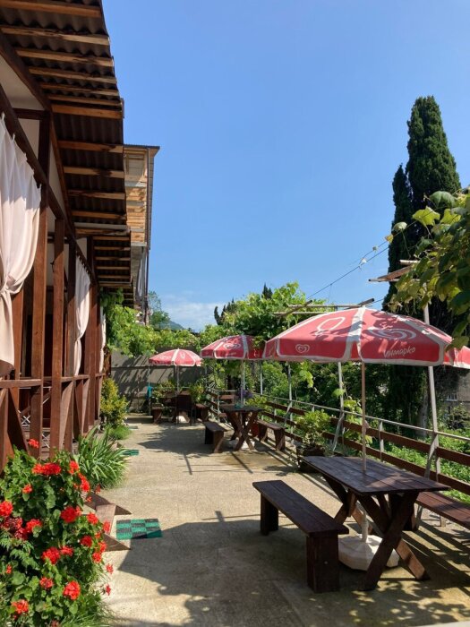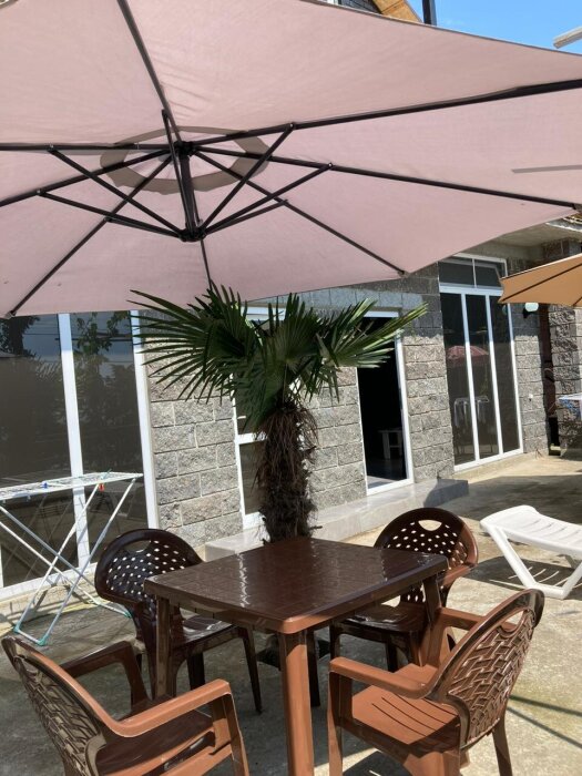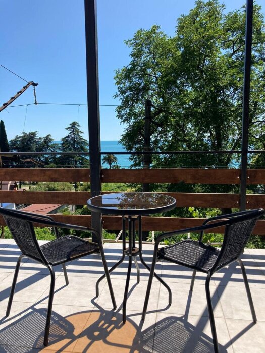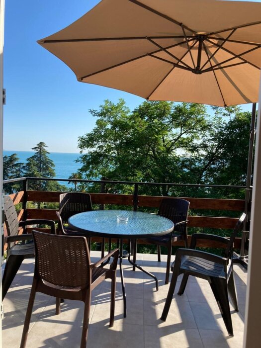 На территории имеется зона барбекю и летняя кухня полностью оборудованная всем необходимым для самостоятельного приготовления пищи. Территория ограждена, парковка отсутствует. В 25 минутах езды находится Пицунда.