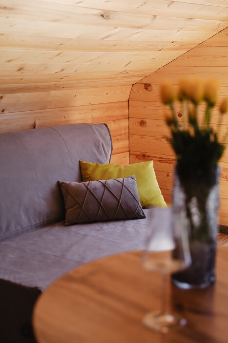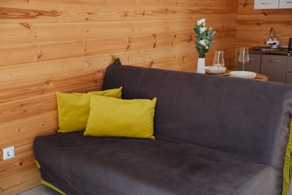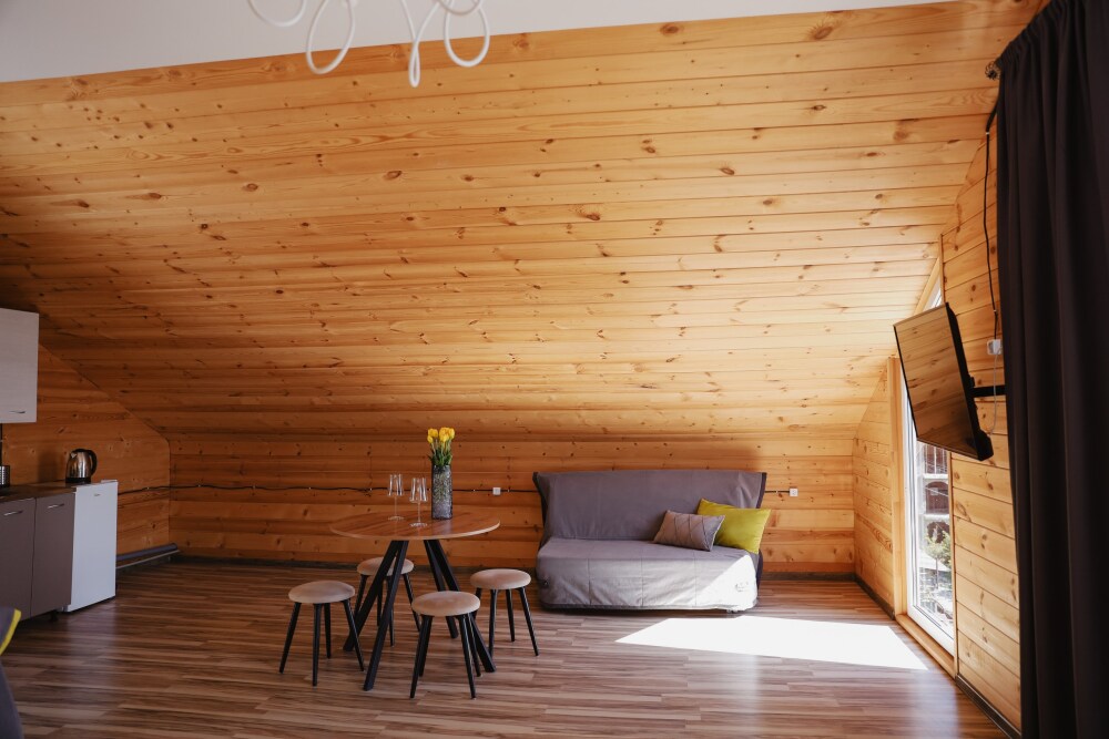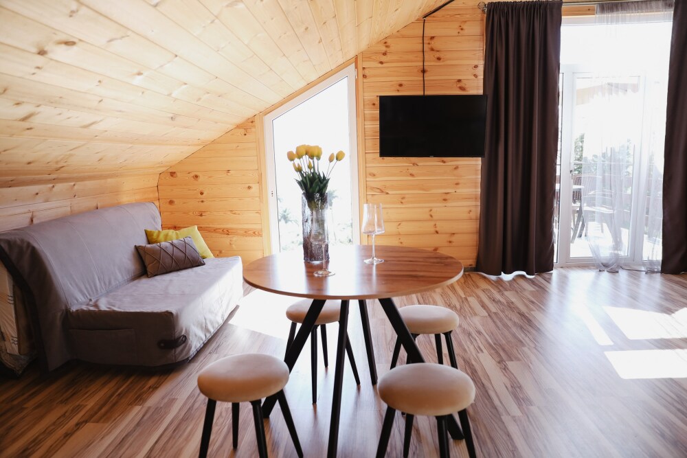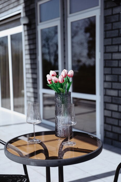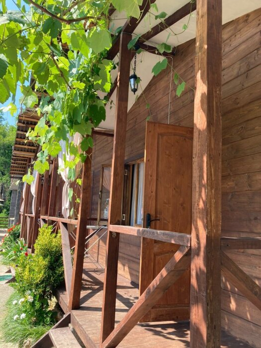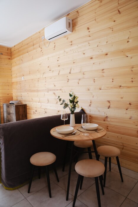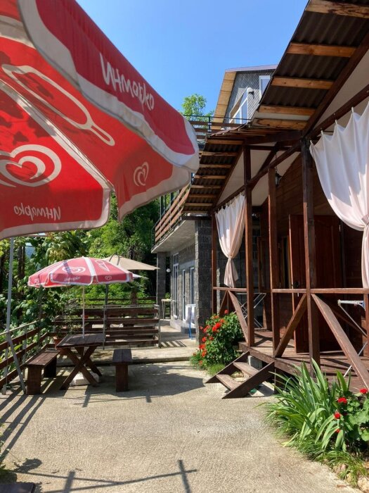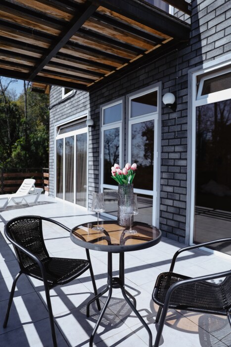 У каждого домика есть своя веранда на которой уличные стулья, для отдыха на свежем воздухе.