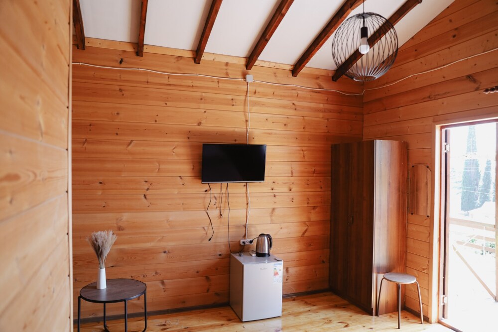 Для наших гостей мы предлагаем коттеджные домики и номера, полностью оборудованные для комфортного проживания. В каждом есть фен, чайник, холодильник. Также есть ТВ, WI-FI, имеется кондиционер и ванная комната. У каждого домика есть своя веранда на которой установлены стулья для отдыха на свежем воздухе, а у номеров имеются оснащенные балконы откуда открывается прекрасный вид на море.