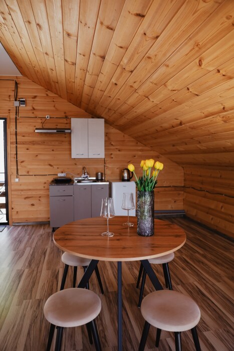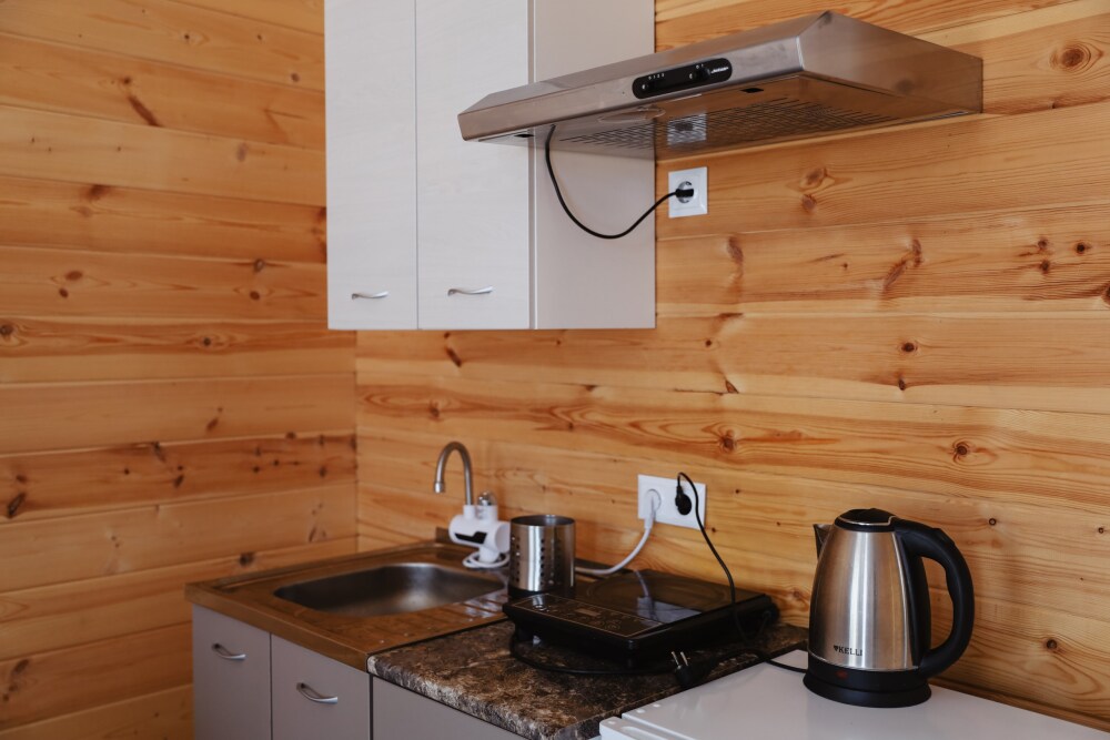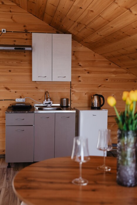 В номере имеется свой полностью укомплектованный кухонный уголок.
