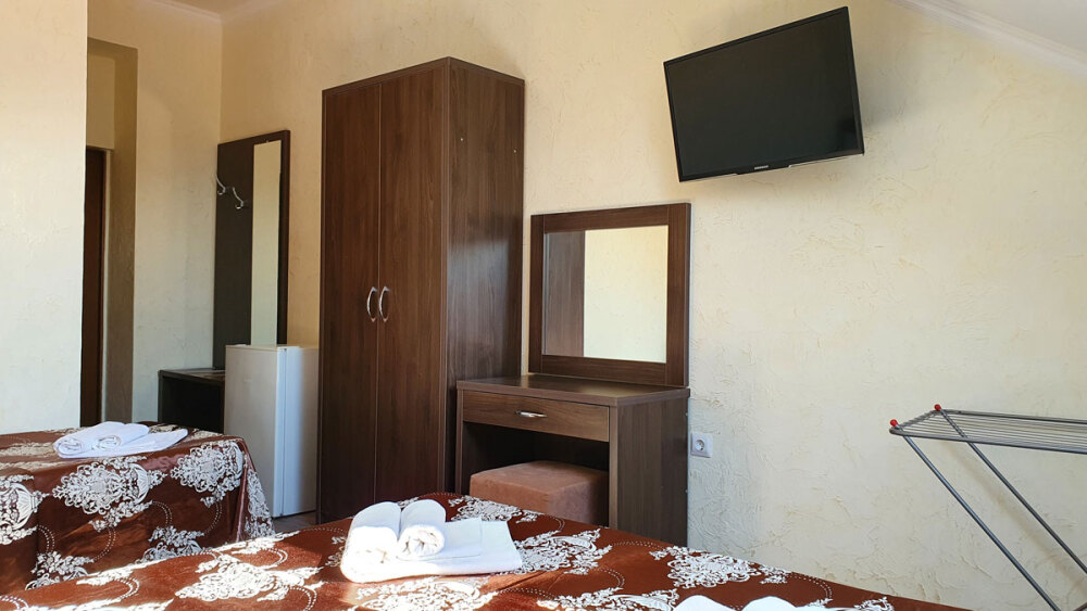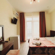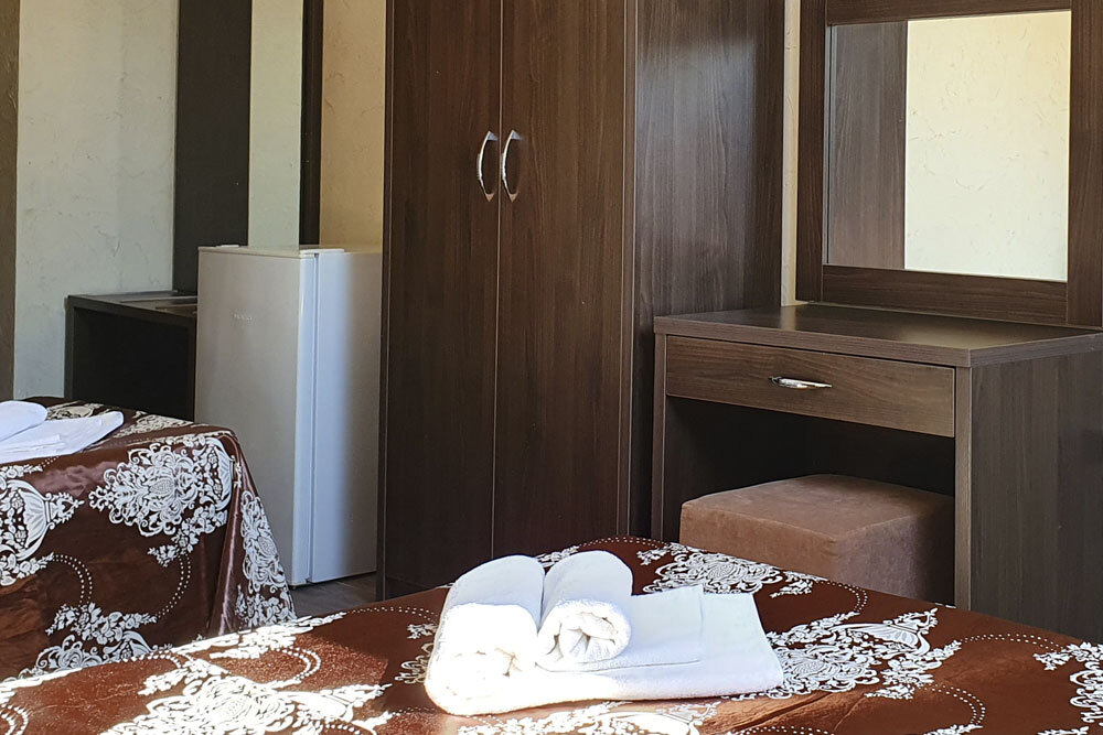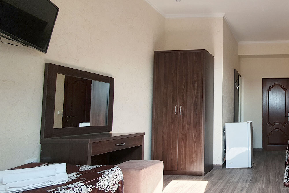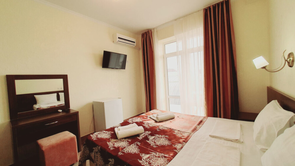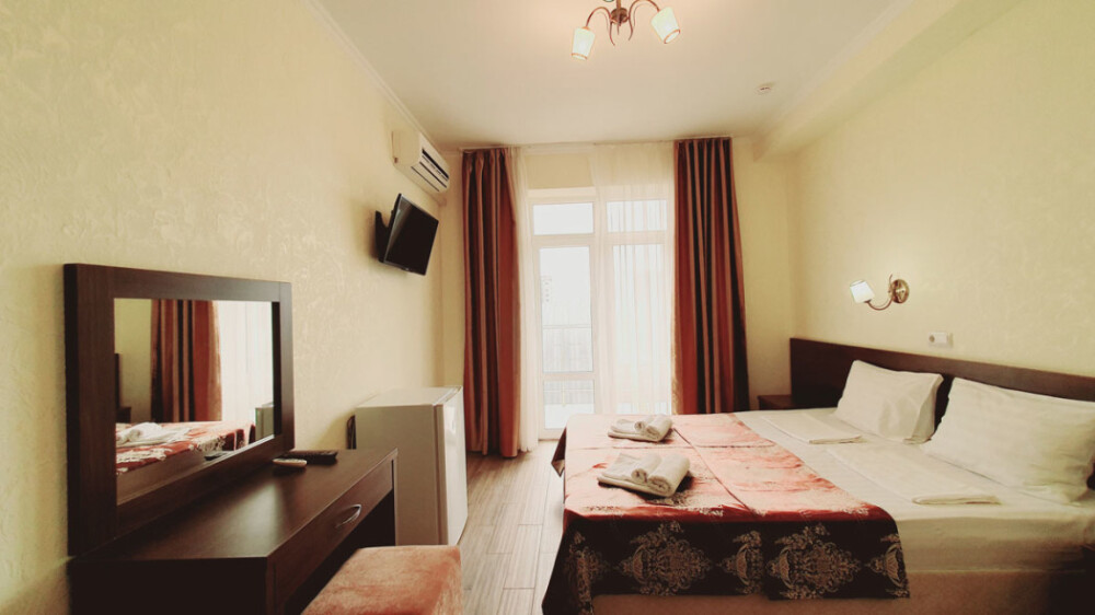Однокомнатный стандартный номер (площадь: 20 м²) с удобствами. Предназначен для размещения одного или двух гостей. Оборудован большой двуспальной кроватью, кондиционером, телевизором, холодильником. В части номеров имеется балкон.