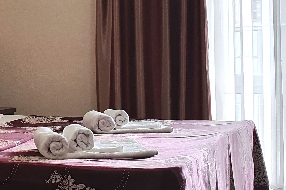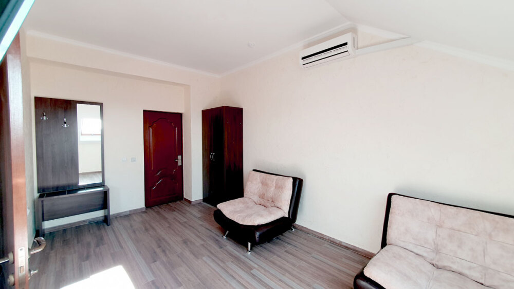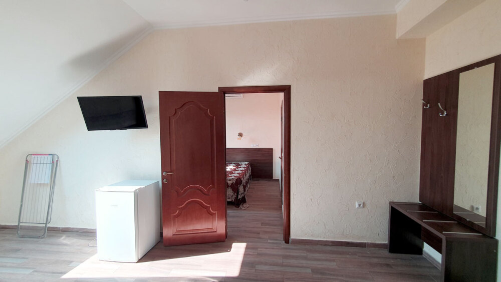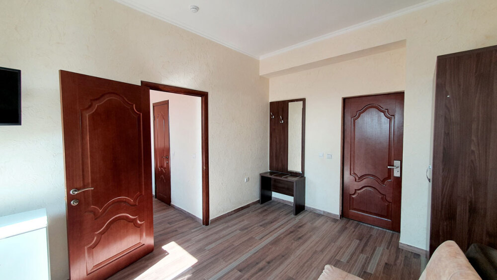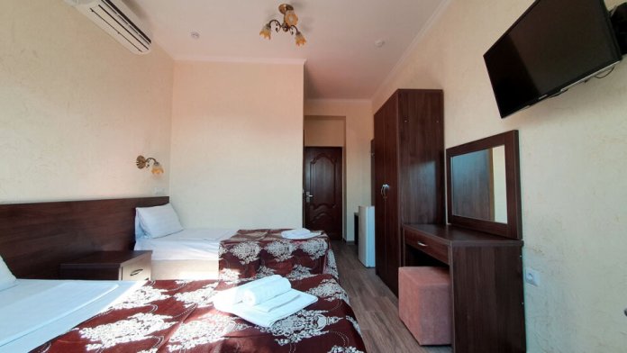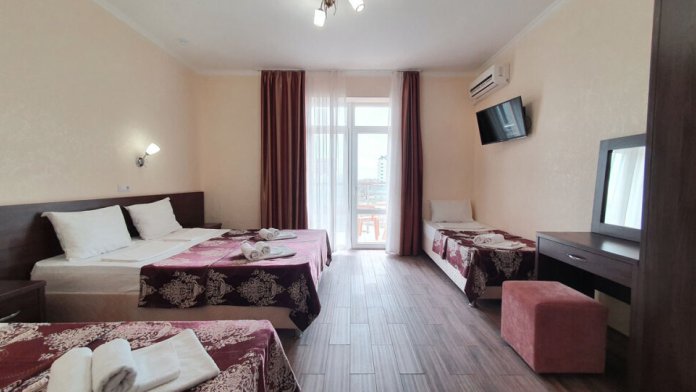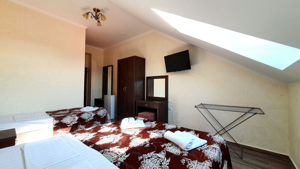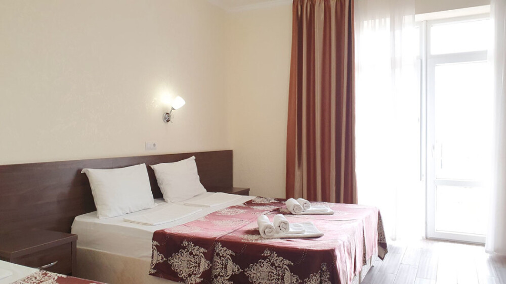 Комфортабельный номер (площадь: 25 м²) с удобствами, без балкона. Предназначен для размещения до четырех гостей. Оборудован двуспальной и двумя односпальными кроватями, кондиционером, телевизором, холодильником.