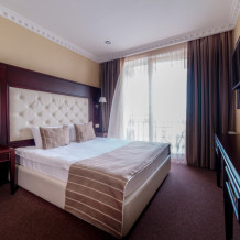 Комфортабельный номер, сочетающий в себе современный интерьер в стиле «Неоклассика» и вид на озеро.