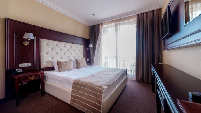 Номер повышенной комфортности, сочетающий в себе современный интерьер в стиле «Неоклассика» и безумно красивый панорамный вид на море.