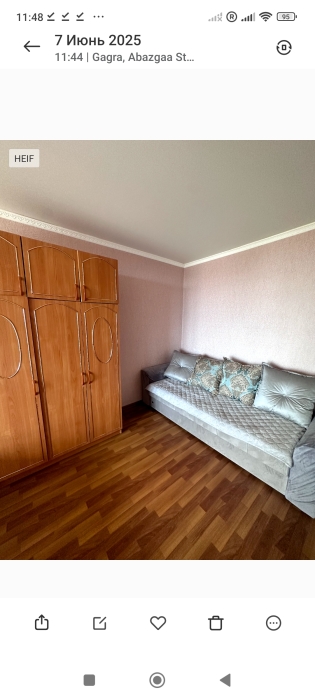 Однокомнатная квартира «под ключ» удачно расположена в 150 м от моря в Гагре, напротив гостиницы «Абхазия», прилегающий пляж - общегородской, мелкогалечный, оборудован лежаками, кабинками.