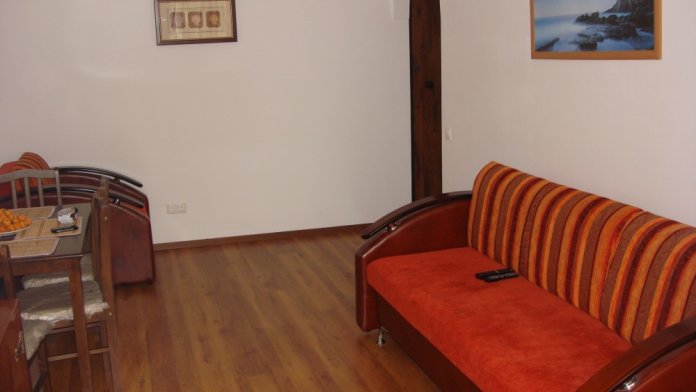 Квартира на втором этаже, окна выходят на море. Квартира переделана из однокомнатной в двушку: спальня (с двухспальной кроватью) и зал с кухней. Установлен кондиционер, жк телевизор, бесплатный Wi-Fi c мая по ноябрь. На кухне есть все необходимое: плита, холодильник, посуда, приборы, электрический чайник, микроволновая печь. В ванной комнате установлен бойлер, душ, сушилка для белья, стиральная машина. Вода поступает бесперебойно, есть насос. Предоставляю комплект полотенец, постельное белье, утюг. Возможна платная парковка автомобиля на охраняемой стоянке в непосредственной близости к дому.