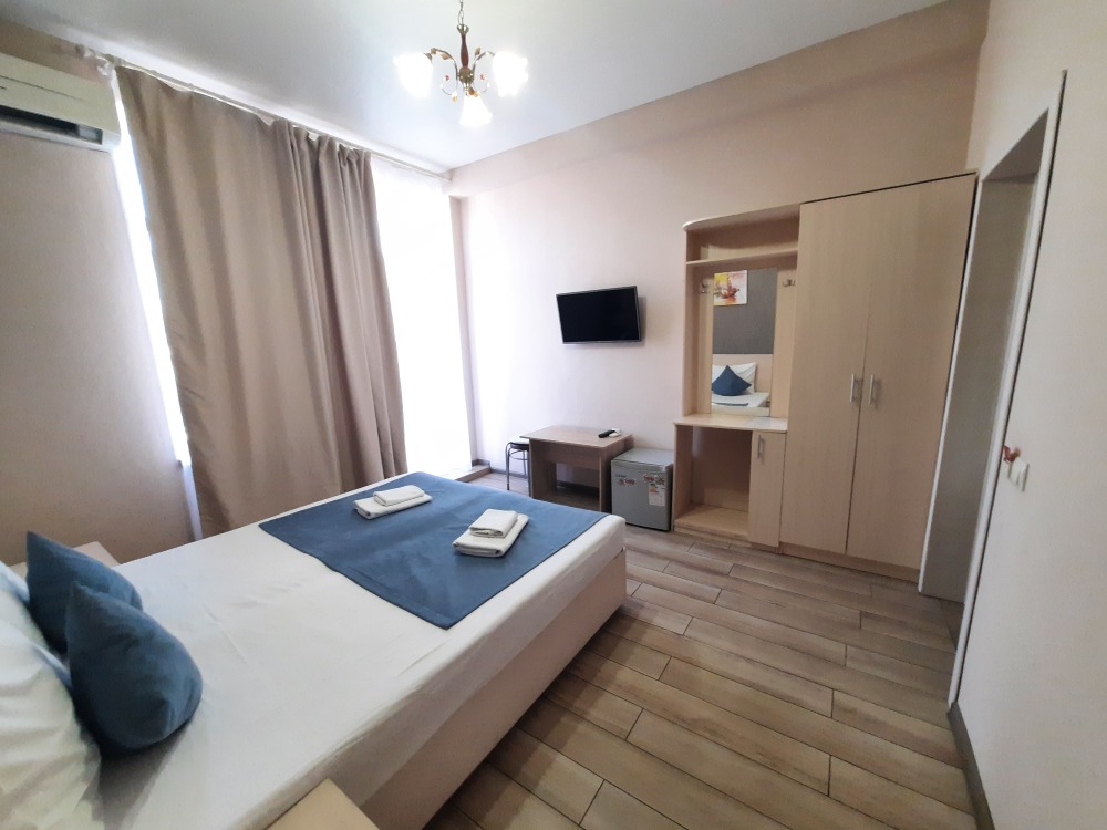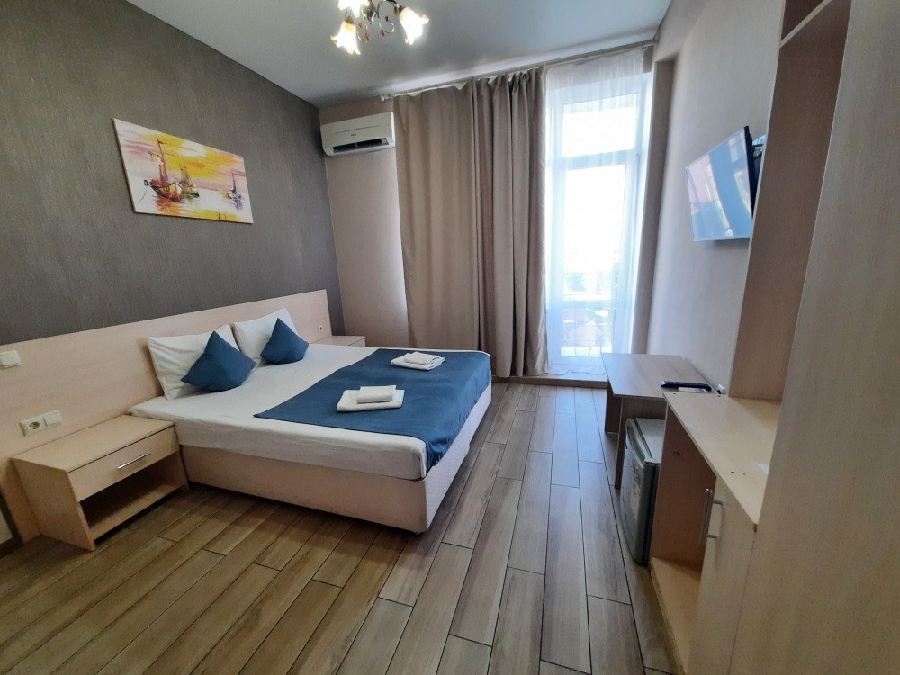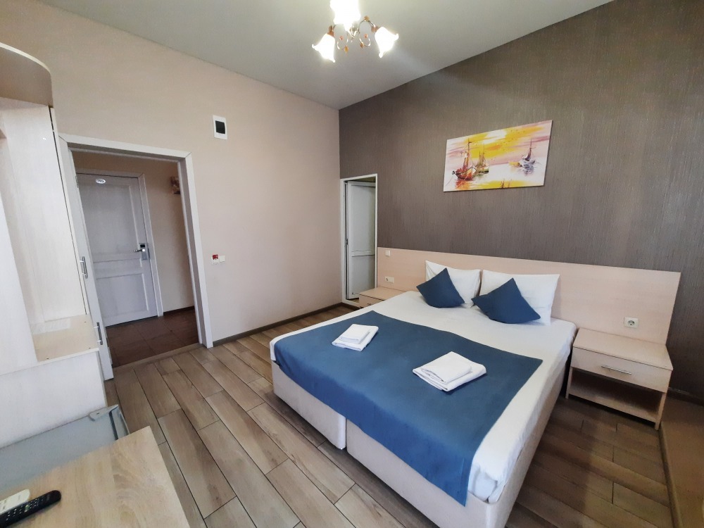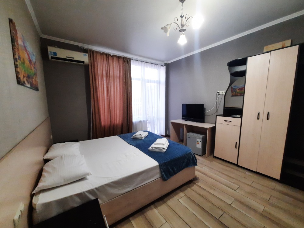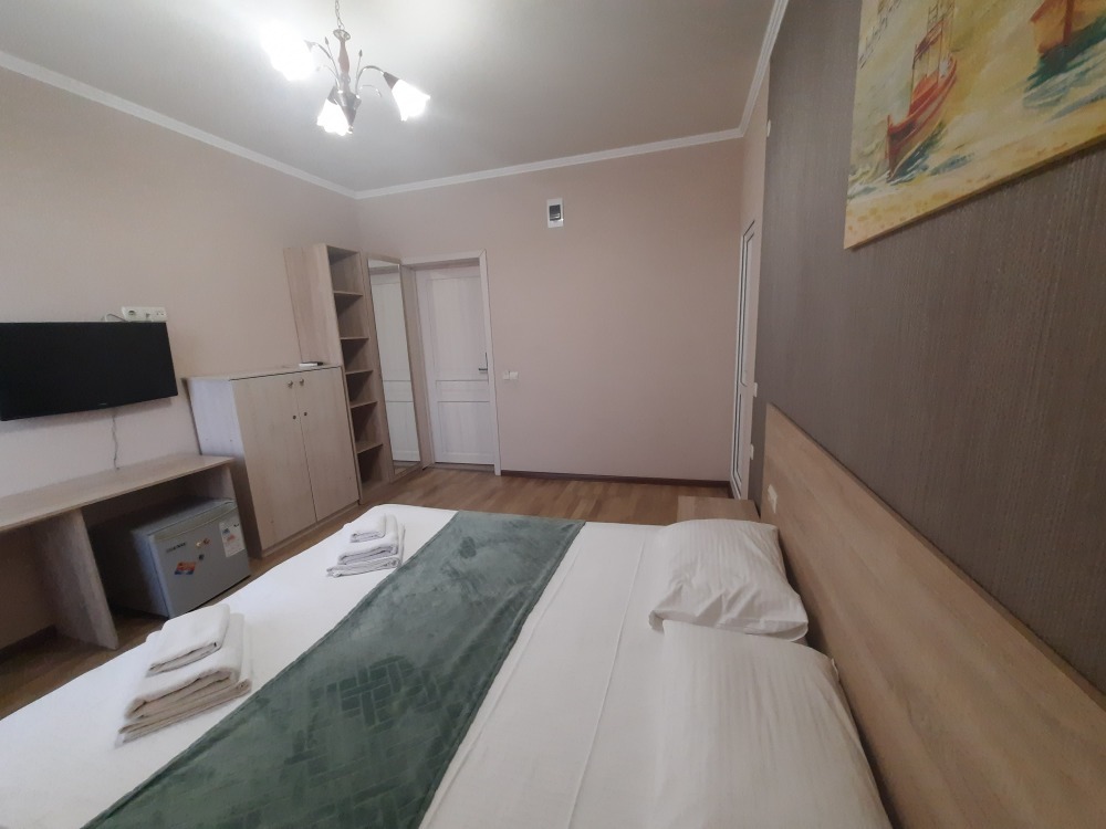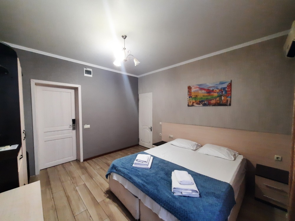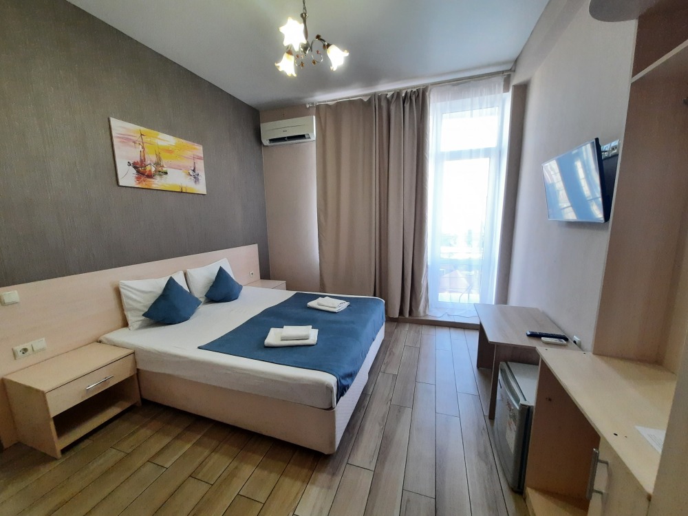 Просторный номер для 2 гостей с балконом расположены на 3−4 этажах гостевого дома. Номера в новом корпусе №2, высокие потолки, много света в комнате. В комнате двуспальная или 2 раздельные кровати, доп. место еврораскладушка.